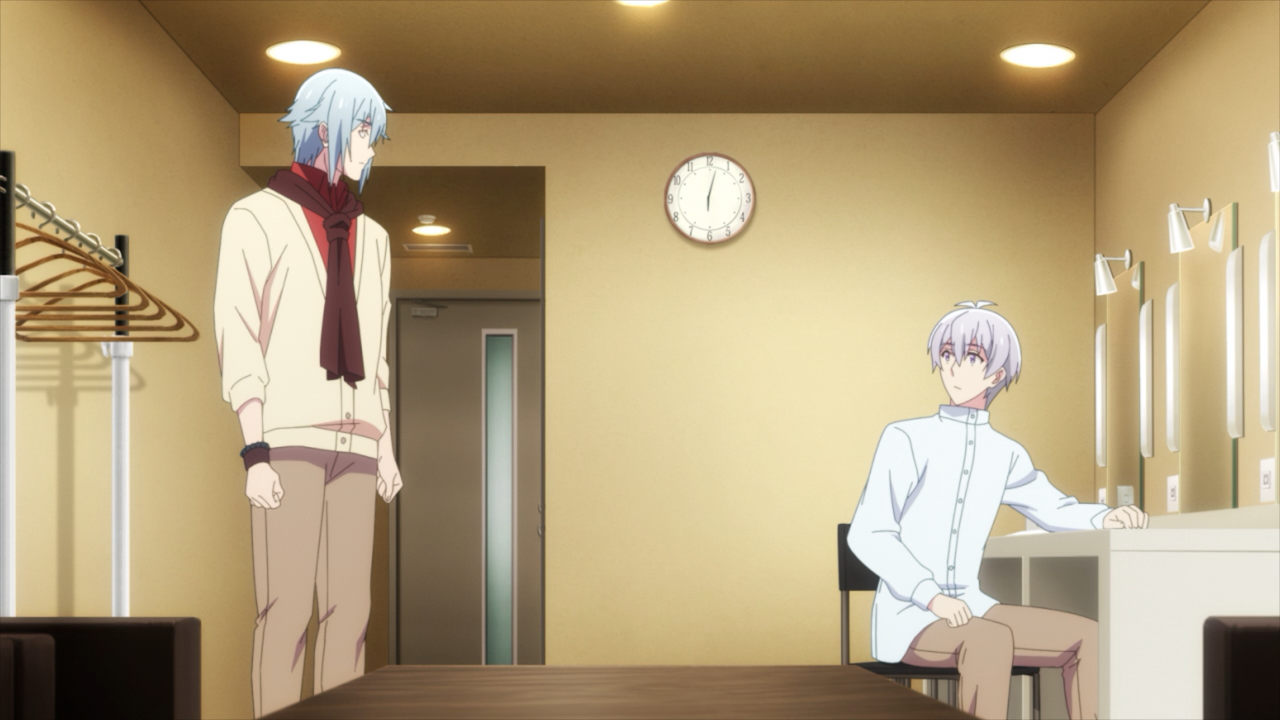 Despite everything that has happened, Riku continues to believe that the kindness he sees in Toma is true. It was pretty funny to watch considering Riku is basically following him with a puppy face that makes it terribly hard for him to say no or anything bad to him. We also saw him choosing to dial back, realizing he shouldn’t poke at the subject of Tenn and Riku being twins being kept a secret any further. But what really struck me, was the moment Riku opened up about how his mother became depressed from the slanders suggesting they’ve sold their sons off to their agencies, we saw Toma’s soft side come out. He had enough tact to not poke the matter of them being twins and how they have a load of secrets any further. He also imeaditely promised to keep quiet about it. But I must say, when they broached into the subject of depression, Toma’s reaction gave me the impression that it something he could relate to. He gave me the sense of he might understand the pain, and that might have been why he told Riku to take care of his mother.