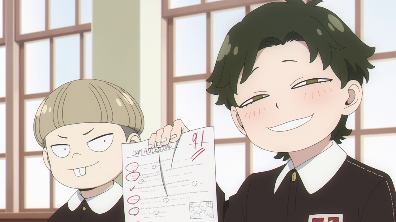 Maybe his antics just seemed sillier in manga form since I feel like the humor in Spy x Family doesn’t always translate as well into this adaptation. But that’s enough of me comparing the two for now. Daybreak believes he is someone who could rival Twilight and I honestly couldn’t help but roll my eyes, especially with the amount of stuff this guy does wrong, much to Twilight’s chagrin. Even causing Twilight to break character for a moment due to his very non-spy-like attitude of wanting to be recognized by people instead of just staying in the shadows. But I guess it ends fine with Daybreak wanting him to spread the word about him instead of taking care of any witnesses as Twilight would have done. Both me and Twilight were just super done with this guy and relieved when he literally just rolled away.Anyways, despite the dumb hijinks this guy brought, it did bring about an interesting situation where someone had paid him to mess with Damian and his brother’s test scores. Makes me wonder if we’ll see others trying to sabotage those two again in the future because of strained relations concerning their dad.