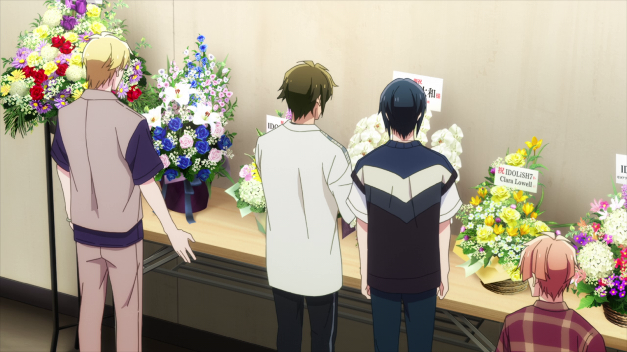 Idolish7 is celebrating their one year anniversary and honestly, congrats guys, you fully deserve it. The group has come so far and being able to perform on stage like this is something that should be celebrated. But I understand that it would feel a bit conflicting at the moment with what is going on with Trigger. The mood is heavy, but they have to put on a good performance for the fans and the last thing they should do is worry them. While Yamato still doesn’t have the best relationship with his dad, it’s still touching that he still sent him flowers, even adding his name to them this time. Even Trigger sent them flowers to congratulate them on their anniversary and wouldn’t want them to bring down their performance just because they’re feeling bad for them. Despite the flowers not having a name card, it’s pretty obvious it was from them due to flowers being their colors lol.