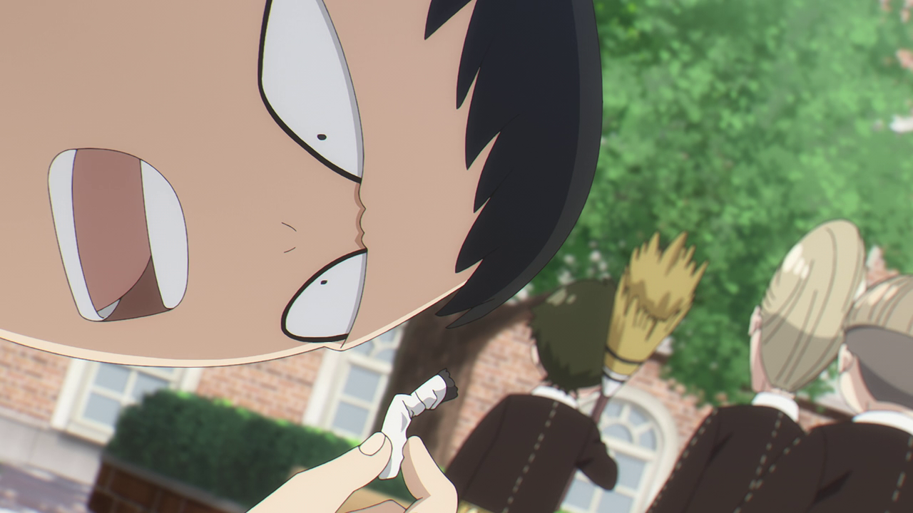 True to his name, George is an incredibly gloomy looking kid who seems to have a permanent frown on his face. Not only that, but he turns out to be incredibly manipulative, both consciously and unconsciously. He ends up pretending to be victimized by Damian in an attempt to get him expelled by making it seem like he got punched. And not gonna lie, but the self punch and throwing himself to the ground just didn’t have the same impact as it did in the manga. Though it was still very overly dramatic. And once he tells the other students about his situation and that he will most likely have to leave school, he acts all sad and downtrodden so they’ll end up taking pity on him and allow him to get the things he wanted to experience once during school. While the latter situations seemed unconsciously manipulative on his part as he really did think he was going to end up being sold into slavery, I was still a bit incredulous towards him.