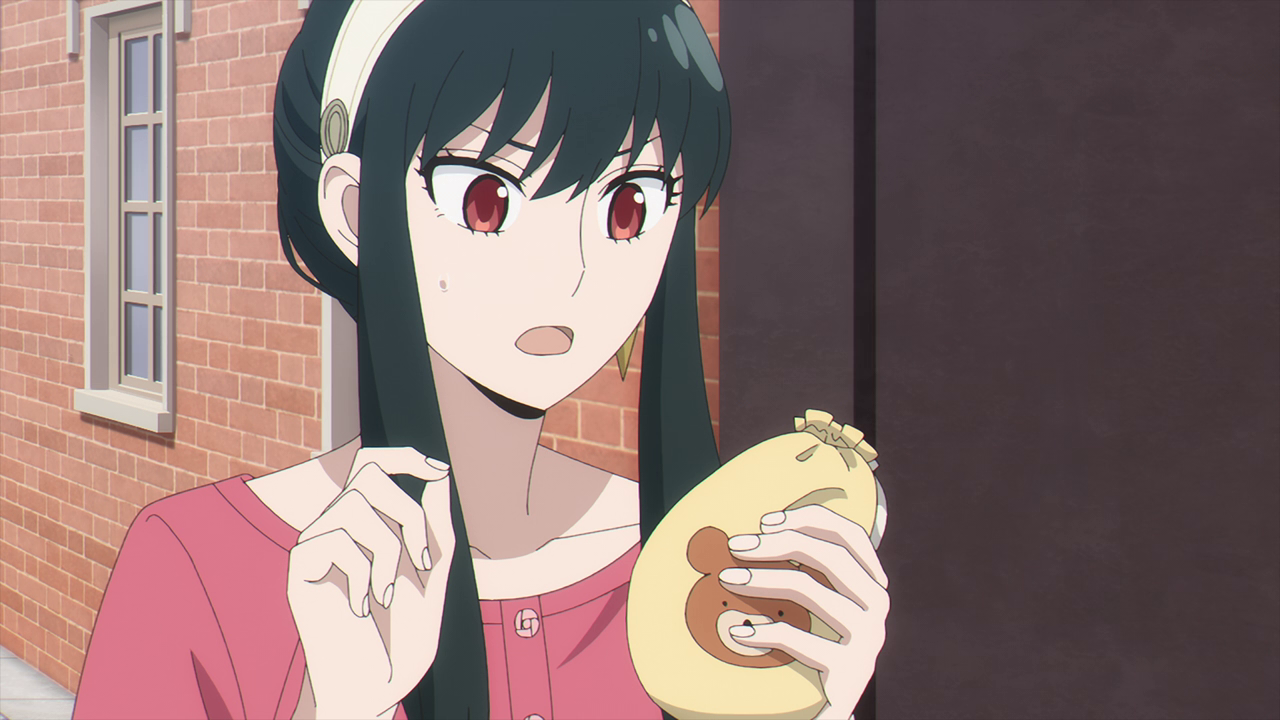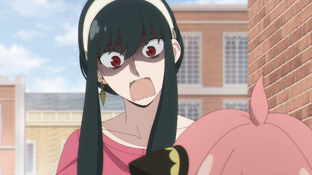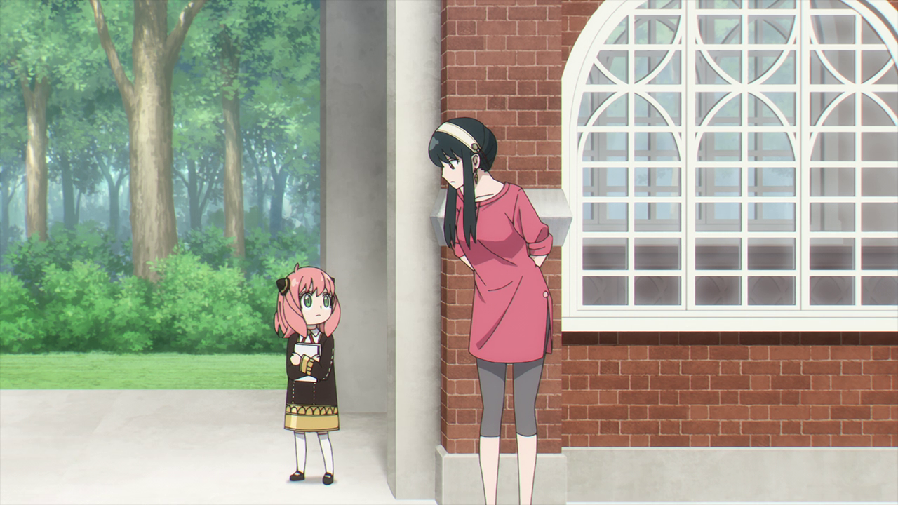 The second misunderstanding of the episode was with Yor thinking Anya had forgotten her PE clothes due to her oversleeping and having to rush out the door. Also can we just take a moment to acknowledge the fact that Loid carried Anya as he ran her to the bus? That little detail was really cute lol. Anyways, wanting to be a good mother and help Anya to not get expelled, she runs out to deliver her PE clothes to her. I don’t remember this part as it is either anime only or was in yet another bonus chapter. But the animators certainly went to town animating Yor’s journey to Anya’s school. Not to mention that really random part where she sends a falling flower pot back up to its owner.