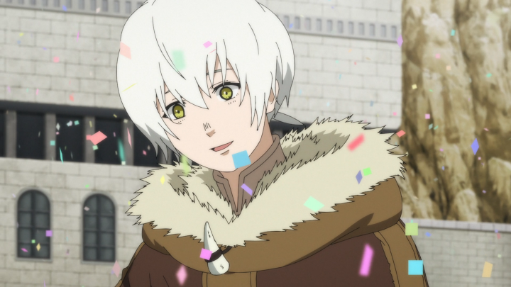 Speaking of love, I’m really curious to learn more about Todo and his relationship to Bon. We met Todo in the last episode and he seems more than willing to become Bon’s chair and be the greatest support to the prince. It doesn’t seem too weird when we take a look at how all the citizens of Uralis act about Bon, but there have been a few moments that show that Todo’s devotion is unwavering. In this episode, namely, Todo willingly goes to rescue Bon’s precious handkerchief out of literal shit. Gross? Yeah, but Todo didn’t even bat an eye. Later on, it’s shown that the particular handkerchief means something to Todo. And if you ask me I think Todo is actually the girl Bon ran into in the flashback (sorry Bon, the one person who you thought was actually a ghost, is real!! and they are near you often!!). However, when Fushi asks if Todo is in love with Bon, it is immediately met with the ” N-No, I am a boy” response. This does give a nice segue to Fushi’s convo with Kahaku though which I think tied this episode together really well. I am looking forward to Fushi exploring the concept of love in the coming episodes.