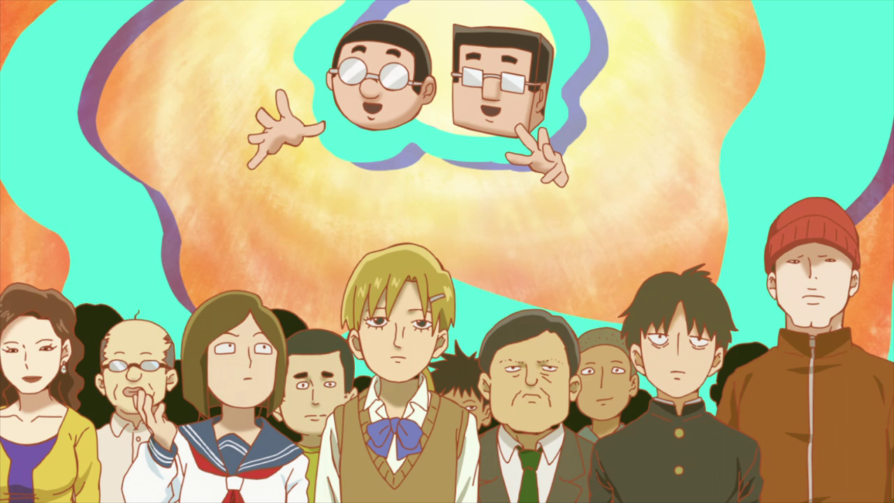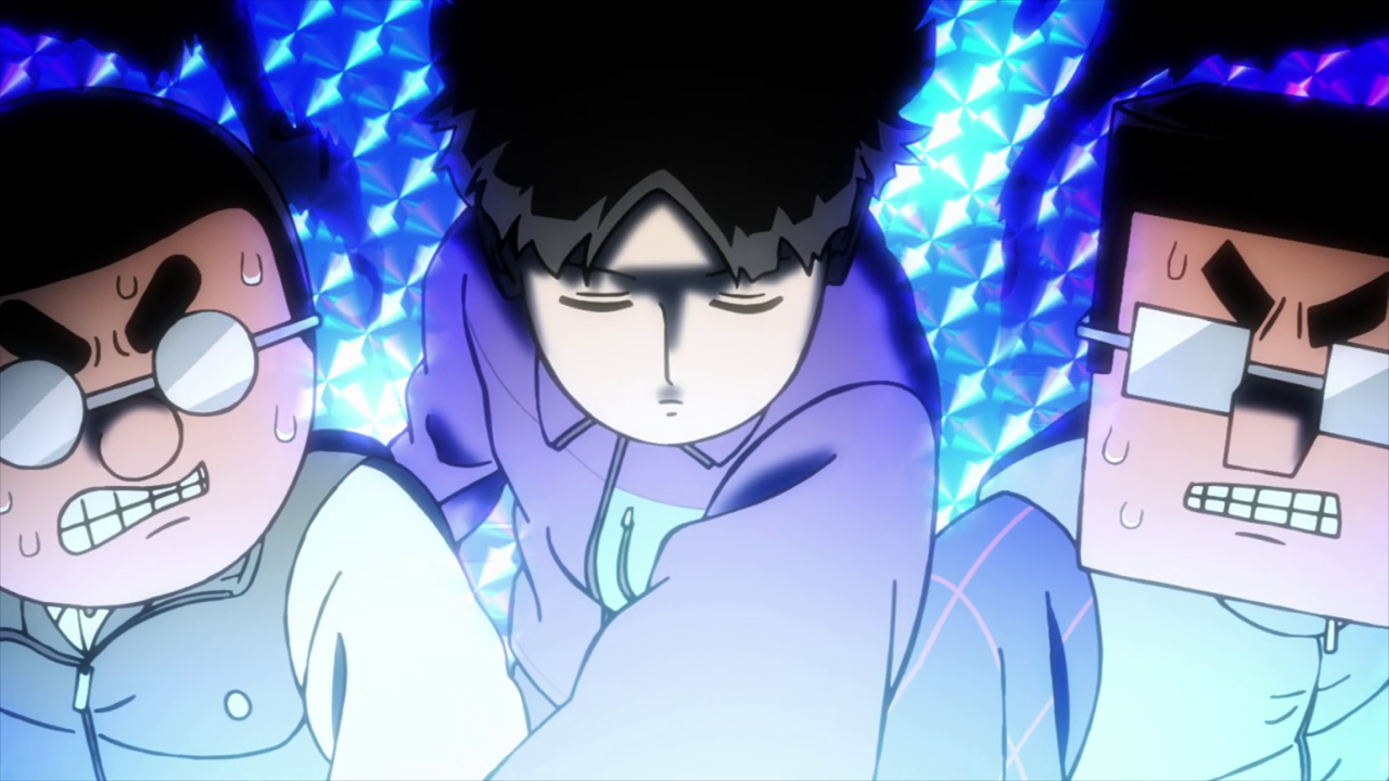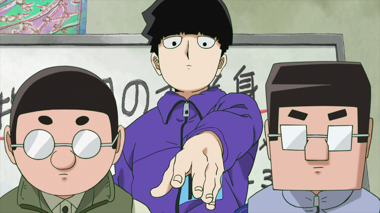They of course go to Mob for help on the situation and Ritsu ends up enlisting the twins from the research facility to help since they’re telepaths. Unfortunately, their power only really works between the two of them so they can’t really help with the interacting with UFO plan. But they agreed to help in searching for a telepath that could help. Mob helps to amplify the radius of how far the “noise” they make can reach and I was a tad worried just how far it would reach due to Mob’s tremendous power. And wouldn’t you know it, the guy who actually quit the Telepathy Club in the first place was actually a telepath. Ironic really. We only saw him for a split second when the Telepathy Club had to disband, so it’s interesting that they actually brought him back.