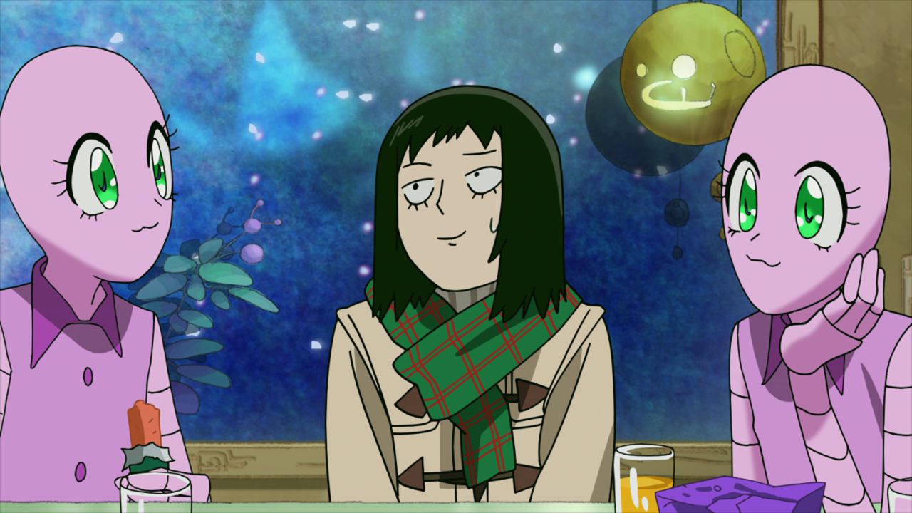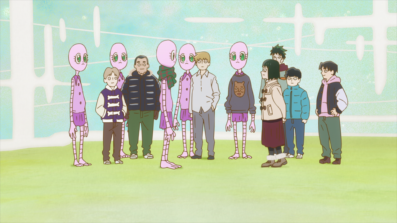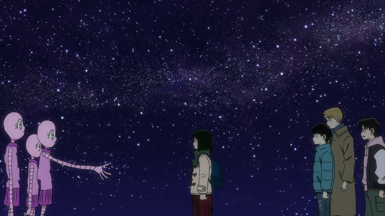 This is when the episode went from incredibly wholesome to incredibly weird. Mob is already a really strange series, but this was just BIZARRE. The fact that aliens were added to this world feels really odd to me. Sure, this world already had the supernatural, but this feels a little too far. For a moment I thought they were fakes that someone or something conjured up… but apparently they were actually real and I don’t know how to feel about this. Though it was rather cute of them to just kind of hang out and have fun with them late into the night. And while this whole thing was a bit too absurd for me, I did feel happy for Tome since she finally got to see her wish fulfilled. Something I can assume she never actually expected to come true. And what a way to end their little adventure by greeting the sunrise of the New Year.