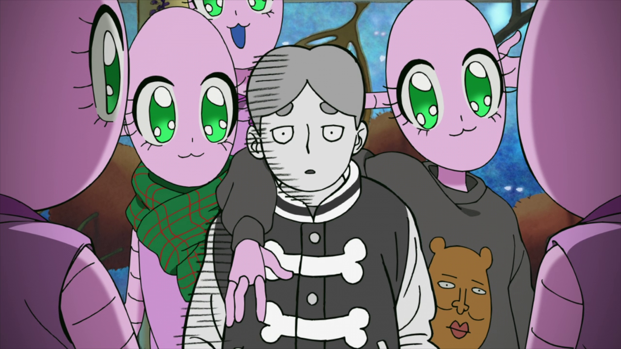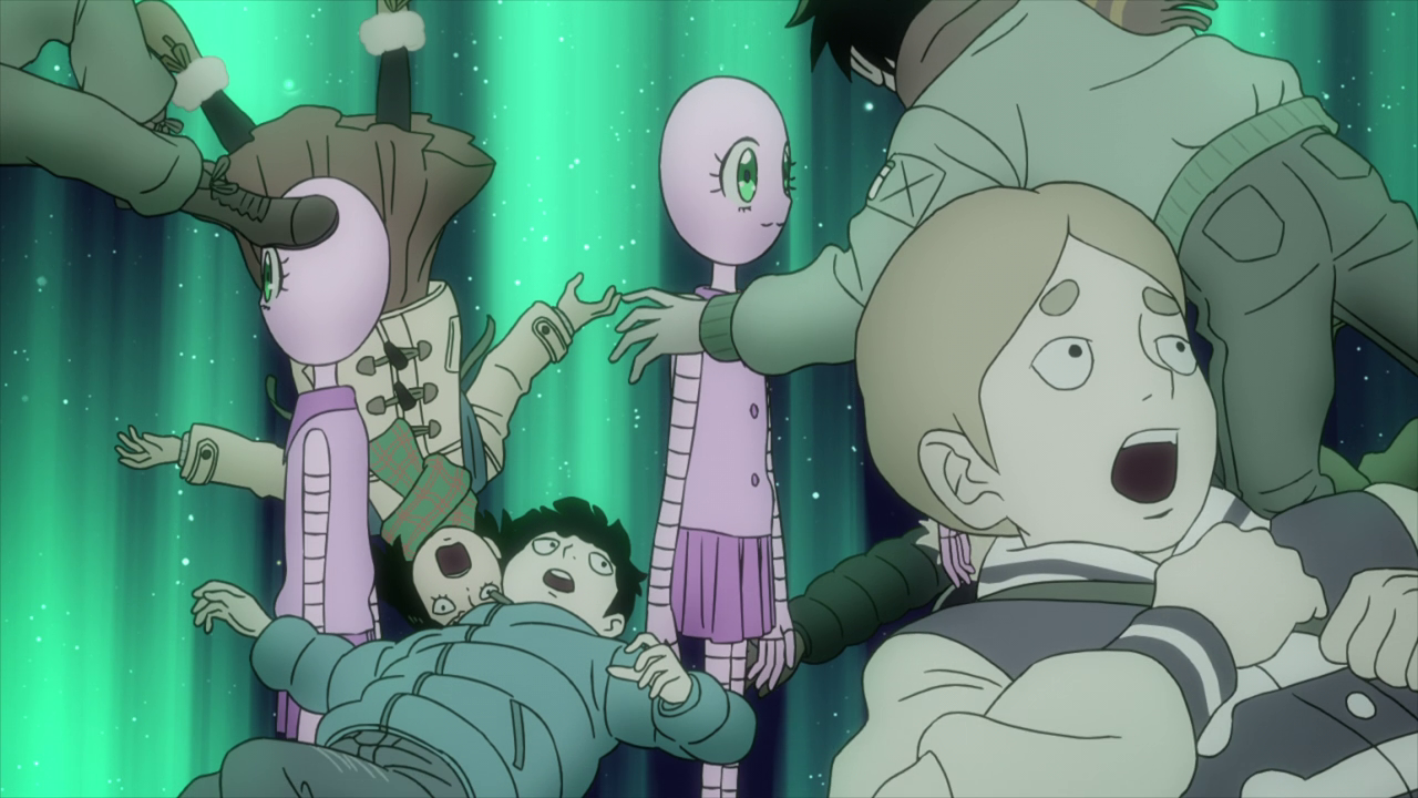 All I can think of is.. why??? What kind of mini arc… I have no idea what the heck I watched, but this didn’t feel like an episode of Mob. The first half of it did… but then the second half completely lost me. Besides that weird alien subplot, the animation in this episode had a different feel to it as if it were rotoscoped for most of the parts. Which was interesting since the designs for the characters are very simple compared to the typical anime style and it was interesting to see how that animation technique translated onto them. Though it was a little distracting when so many of the faces were just blank in long distanced shots. I feel like they were cutting a lot of things to preserve time and budget, which makes me wonder what they have in store for us in the coming episodes.