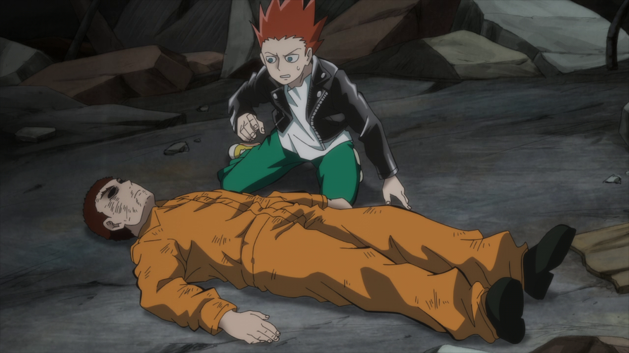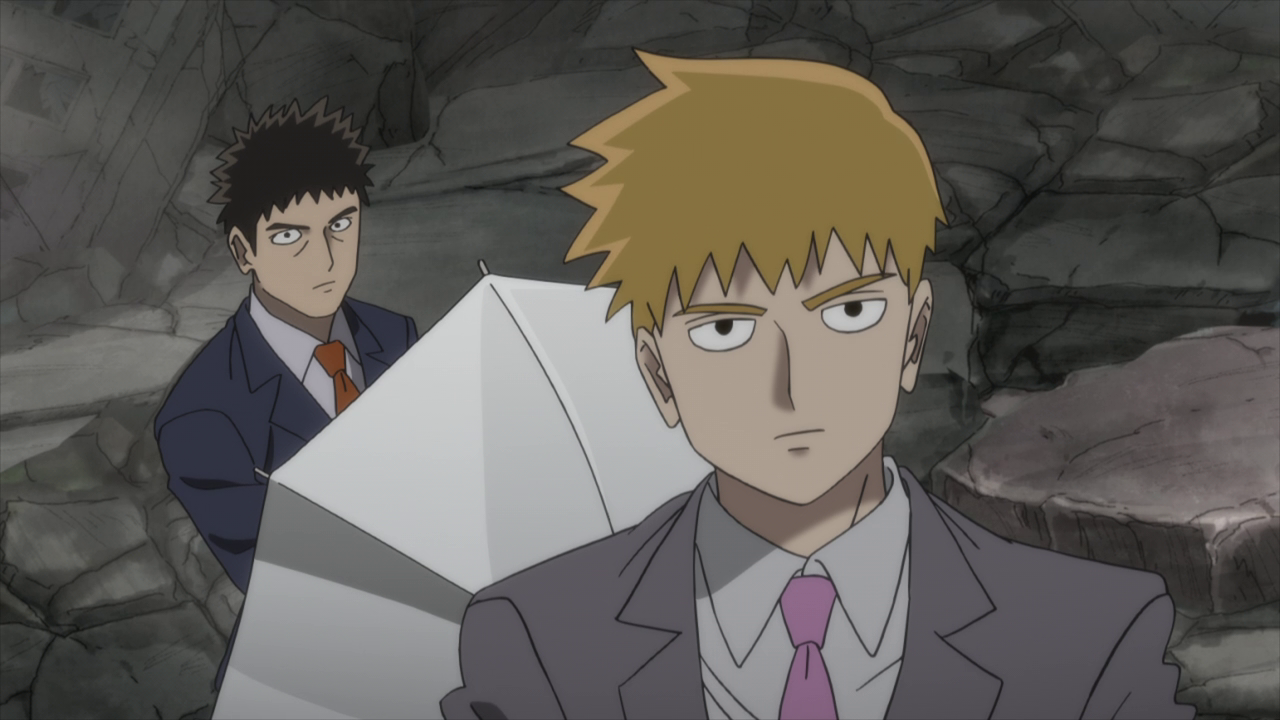 It was interesting to see Sho and his dad having to fight together, considering how they were at odds with each other just a season ago where Suzuki nearly killed him at one point. He even went as far as to shield Sho from attack. I have to give Suzuki respect for initially wanting to help Mob by doing the exact same thing he did to save him before. However, his way of thinking is still a little skewed as he believes sacrificing his life will ultimately atone for what he’s done. But with the look of concern on Sho’s face, he seems to realize that there is still a chance for him to make right by his family and chooses to run away from the fight and continue living in hopes of rebuilding what he had destroyed initially. And it’s true that people cannot be held responsible for their actions if they were to just die. Suzuki chose to continue living so that he could ultimately make amends with his family. The only people (besides Mob) who could be there for him. Which again, huge respect. Someone as prideful as he once was even admits that he can’t be as strong as Mob is despite having called him weak when they first met.