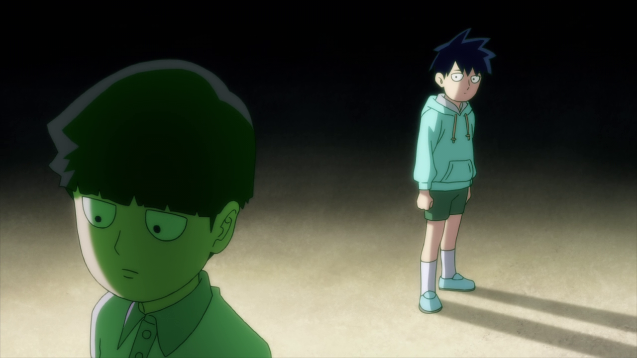 The second biggest highlight in the episode was Ritsu. Of course Ritsu would immediately recognize ???’s presence since that is the reason for his trauma regarding Mob. But despite said trauma and the danger, he still rushes in to try and console him. Ugh, it was honestly heartbreaking how expressive Mob was as a kid until the incident happened. Not to mention just the sheer amount of guilt and responsibility Mob must have felt afterwards. I can’t even imagine what he must have gone through emotionally to just start shutting out his emotions like that as a kid. And even if Ritsu wanted to talk it out with him, I’m sure he wouldn’t be able to understand. Especially not as kids.