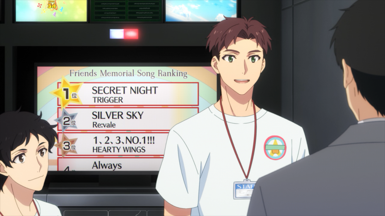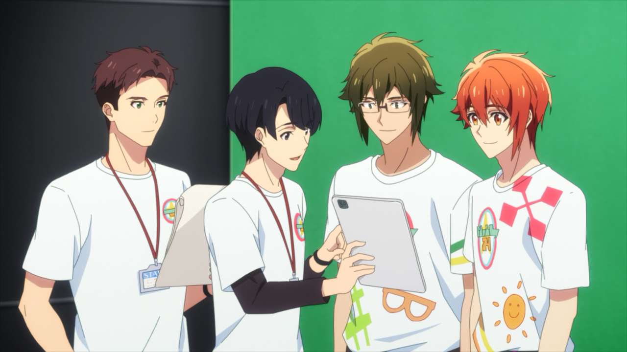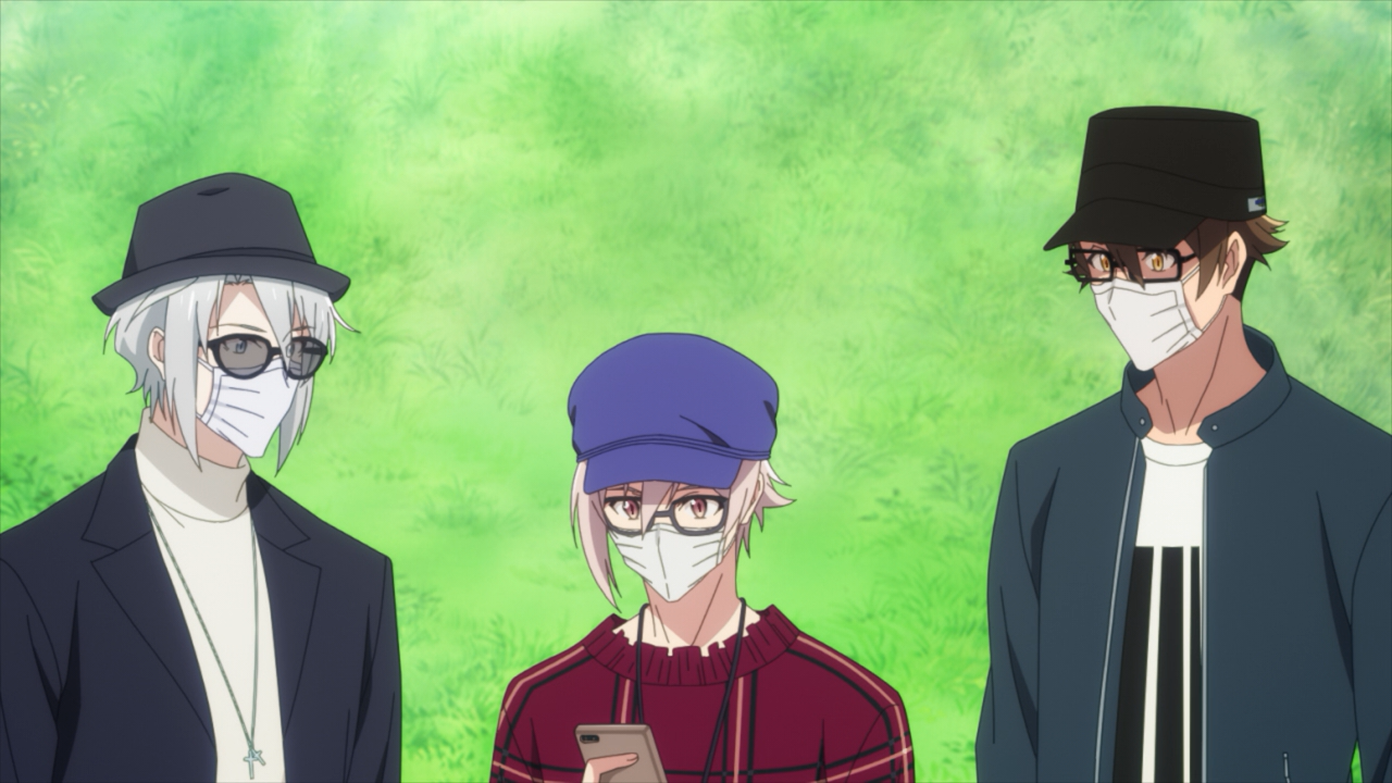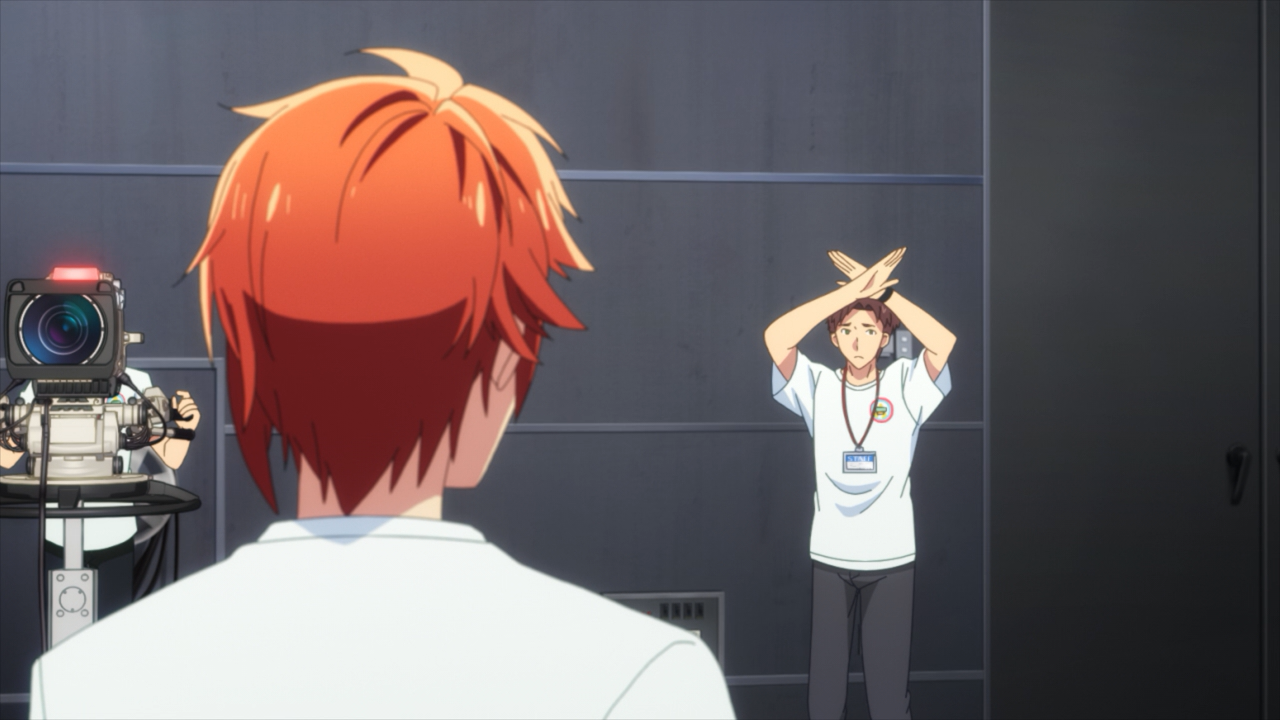 That said, Idolish7 already got some concerns developing in the background they need to worry about, starting with Tamaki– because unfortunately his eyes were right: He spotted his dad, and guess who’s he hanging around with? Ryo’s guys. Lovely. Should the guy actually show up at the studio, this will be the one thing I saw coming a mile away because this is a live program, and Ryo is looking to do everything he can to tarnish Idolish7’s image. Hopefully Tamaki will be able to confront him without freaking out like he did last time. He has matured a lot, so hopefully he will defy Ryo’s expectations by being able to face his head without losing his cool. Sogo’s dad might have been a good trial run so to speak– but facing his own, who has done so much harm to him and his family, is an entirely different matter altogether.