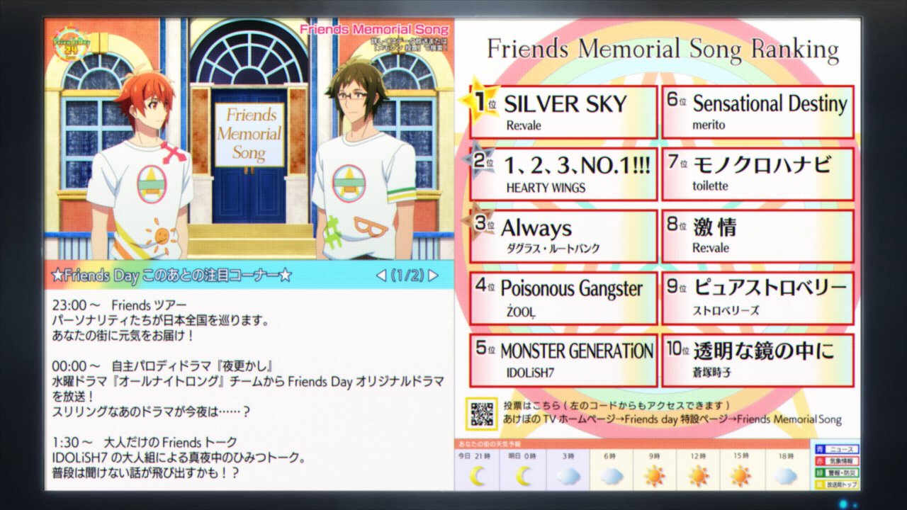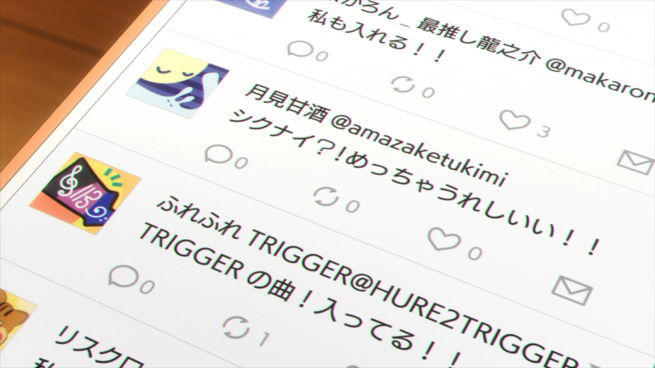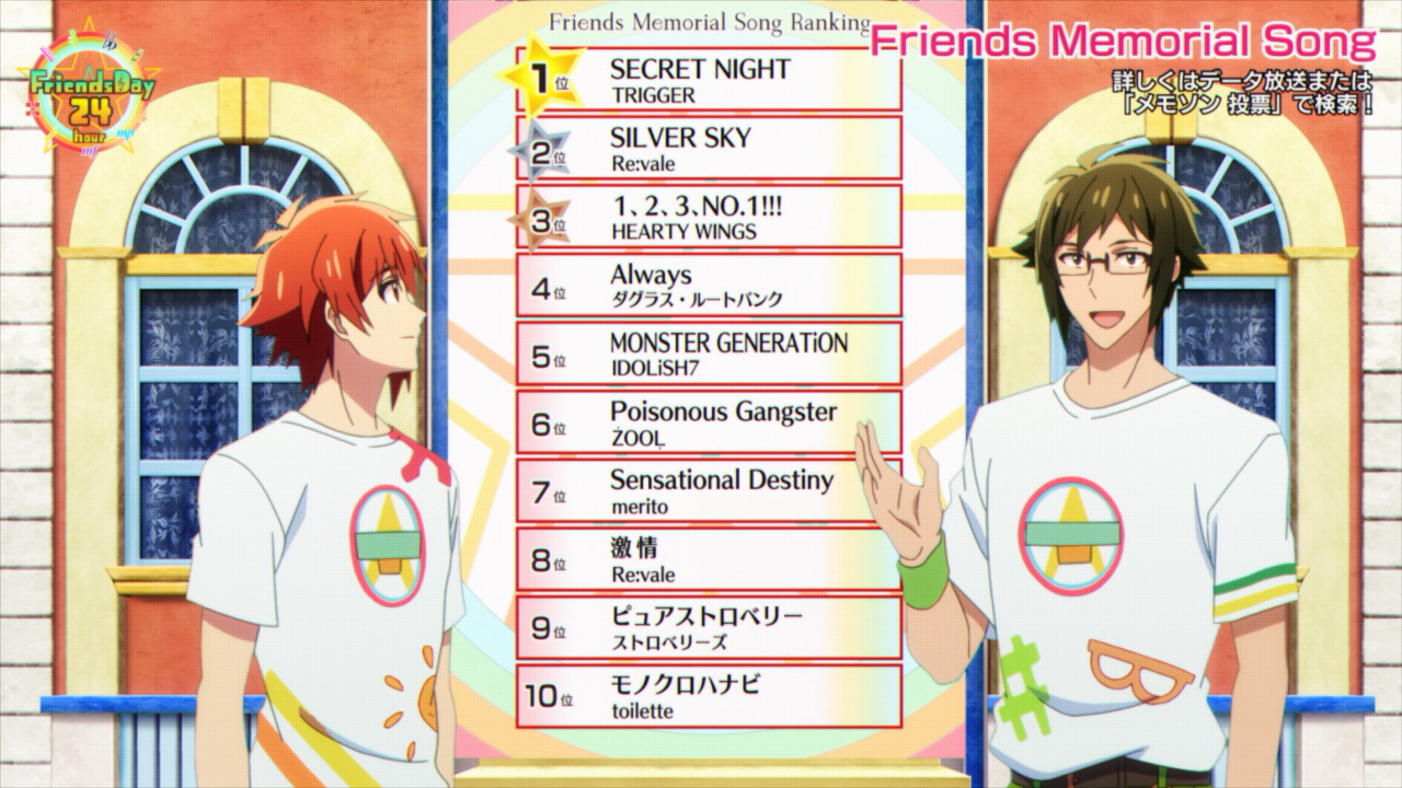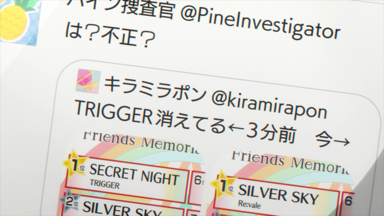 Then there’s Re:Vale and their counter strike plan. They are looking to take advantage of the fact the high-ups are set on blacklisting Trigger from the program, which is why despite having been voted to first place for ‘Friends Memorial Song’, they pulled it at the last second despite having aired the results. Fans naturally are in uproar about the tampering of the votes, which puts the spotlight on media blackout and the legitimacy of the charity. As result, the following tags then quickly began trending:
