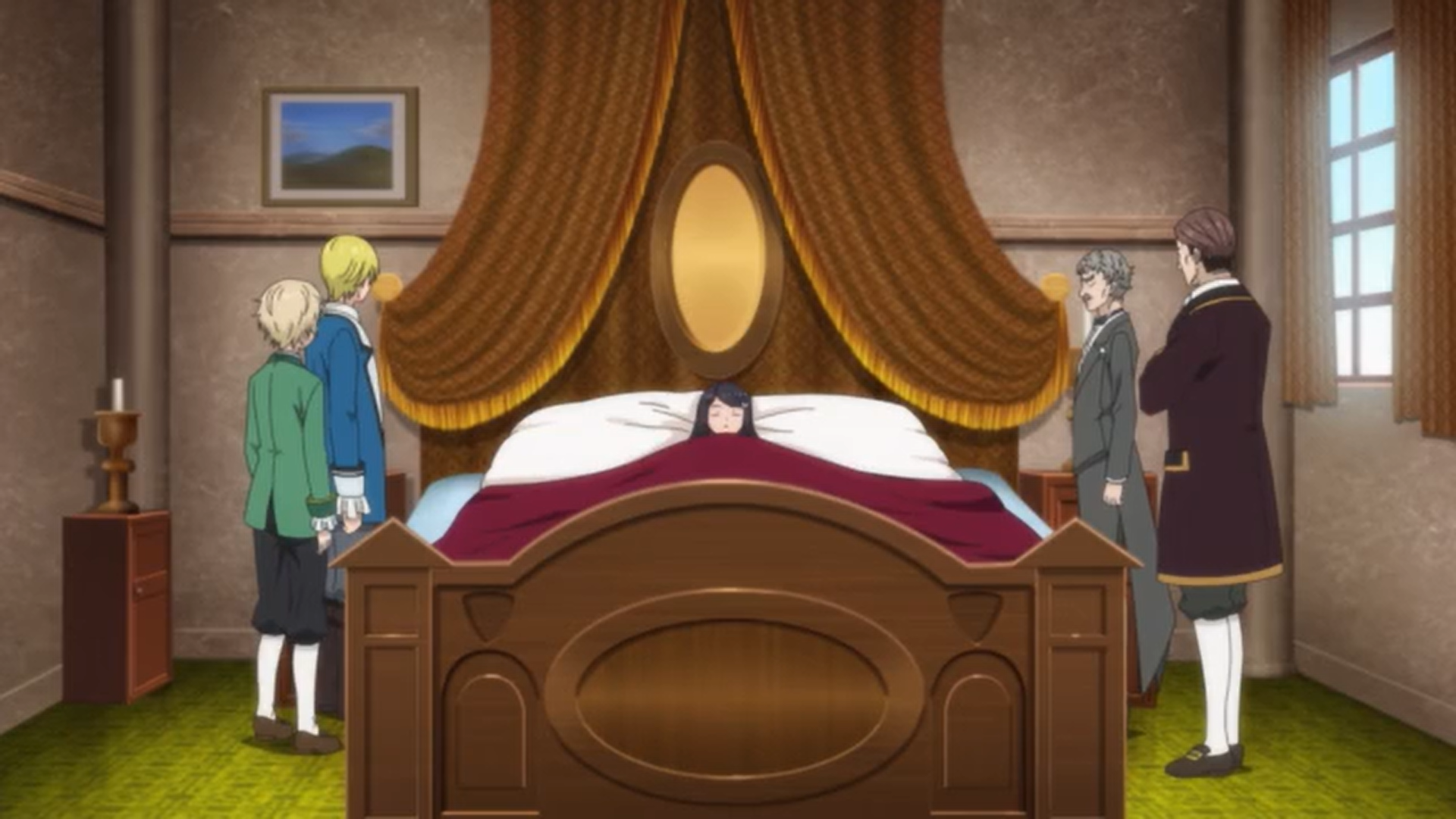 Today’s episode made a change in the way how Mitsuha met Count Bozes and his family. Instead of Mitsuha easily being allowed into his residence by pretending to be a noble daughter, she’s instead being blocked by the guards who couldn’t allow stranger, so she had to set up a meeting by scaring their carriage horses and then pretended to pass out, thus, making the count’s sons having no choice but to take her back to their mansion.