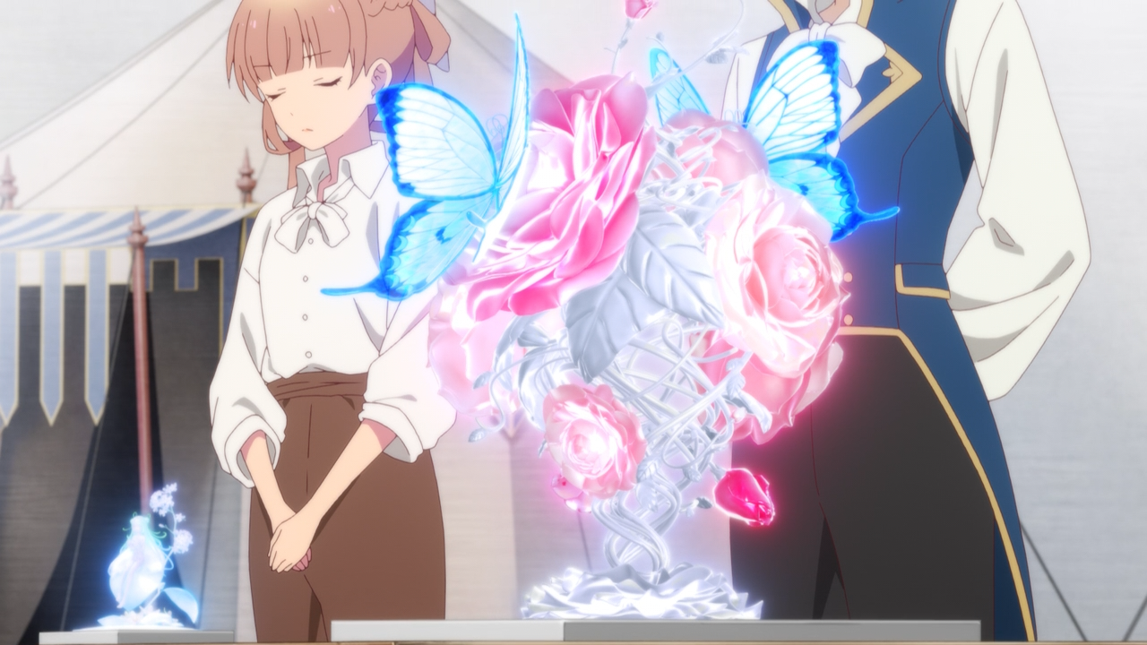 While they made it to the competition, it really didn’t pan out the way anyone could have possibly imagined. Despite the fact that the advising judge Hugh (who was revealed to be a Silver Sugar Viscount) knew damn well that the piece Jonas had submitted was crafted by Anne, and that the King had certainly preferred Anne’s small fairy piece, it was Jonas that had originally won because Anne’s Butterfly work fulfilled the judgment criteria, which the basis of it needed to be large enough to be displayed for the event. Just when that bullshit was about to go through, Mythril Lid Pod came in clutch with the way he stirred enough of up a ruckus about how Jonas stole Anne’s work for her to have the courage to speak up as well. After-all, Anne wasn’t exactly in the right position to do so. Thanks to that Hugh to capitalize on the opportunity to have them prove who made the piece by having them recreate the butterfly in front of everyone. Much to my sanctification, Jonas couldn’t even bluff his way through it, and was immediately disqualified for submitting a stolen work. Better yet Anne got to punish him by giving him a good smack in the face, as she should since he tried to kill her!