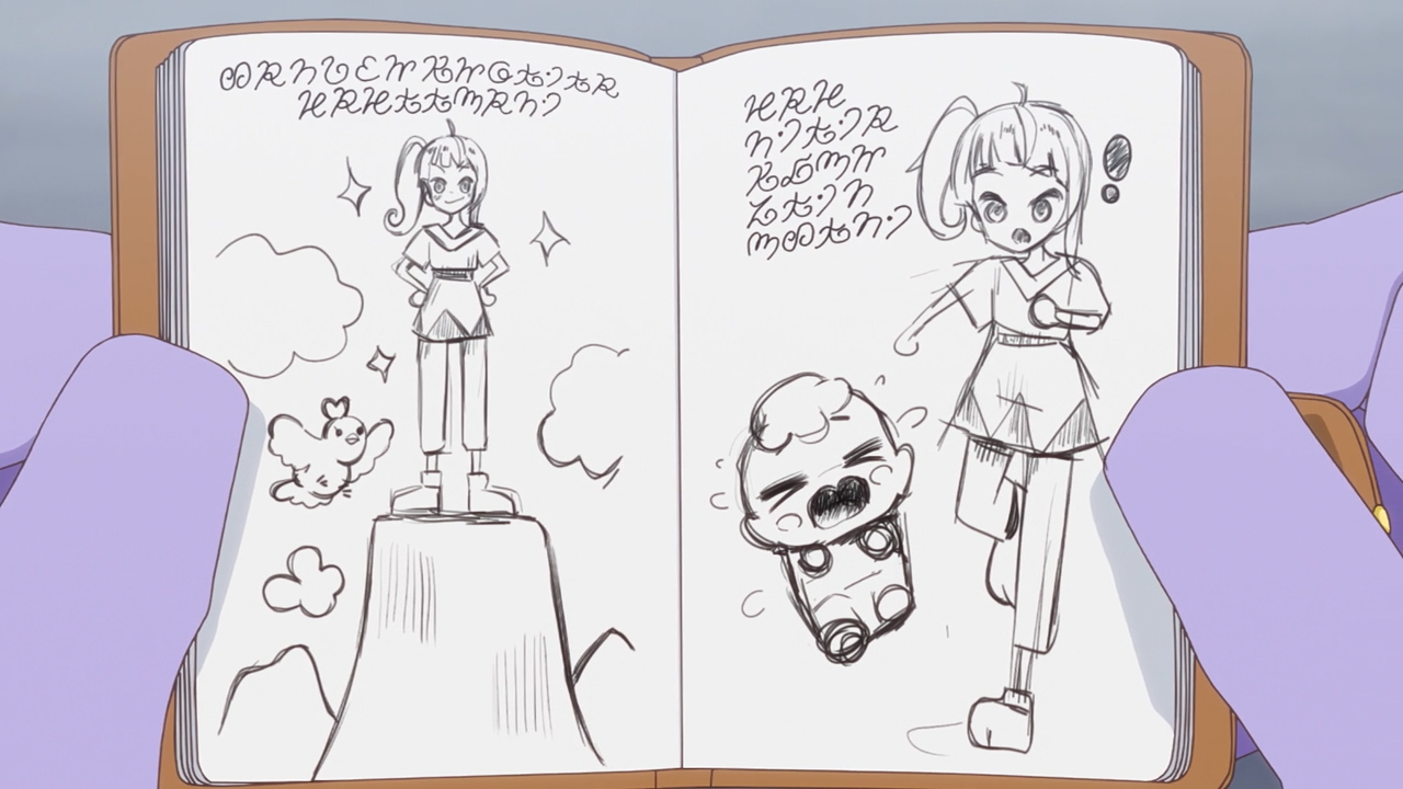 That said, I do want to note though, there was an interesting point that was dropped in this episode of how identifying Mashiro as a “Side Character”. This makes me wonder a bit more about the premise of their magical world, and Sora’s dream of becoming a Hero. But the most mysterious clue however was actually what was inside Sora’s notebook. It reads almost as though it’s bearing a prophecy, showing the start of Sora’s journey to becoming a hero. It included the detail of how she isn’t afraid of heights (the bird who was carrying her was shocked to see), and how she finds a baby (though it’s phrased as, “A hero never abandons a crying child.” so it’s more like a conviction) and then facing the monster, and thus becoming a hero. Either way, it’s most likely the case that she’s the one who wrote it herself, but I’m still curious to see what kind of role it may have in the future.