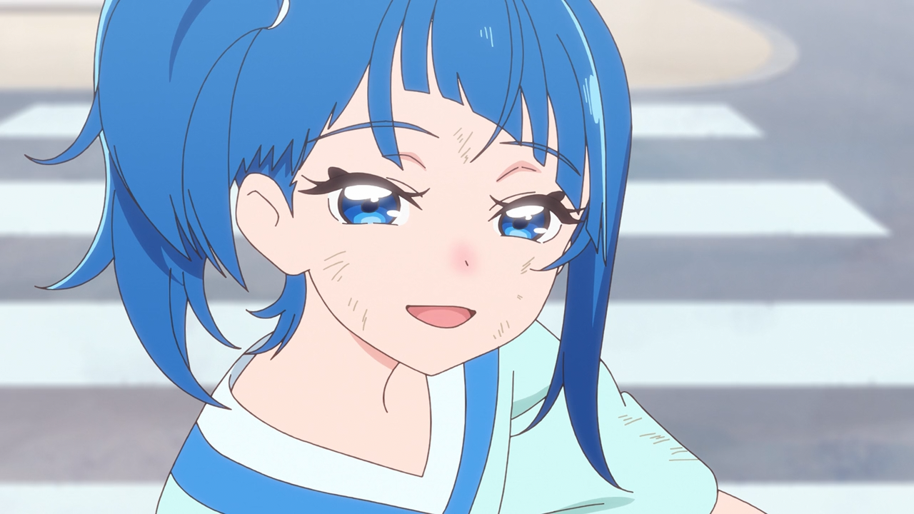 First of all, I FREAKING LOVE SORA! Gosh she’s SO COOL. I love her athleticism, and how courageous she is despite being terrified herself, and yet she’s also has such an endearingly soft side– AHHHHHHHHHHHH!!!!! She’s totally my favourite. It was so cute how Mashiro was like “are you a hero?” and Sora wasn’t even sure how to answer that, which I actually love. It’s her dream, but she hasn’t considered herself to be a hero just yet. I also freaking love the fact she’s blue too! Finally a change of pace! (Though it can be said the same for some of the others like Tropical Rouge, but you get my point!)
