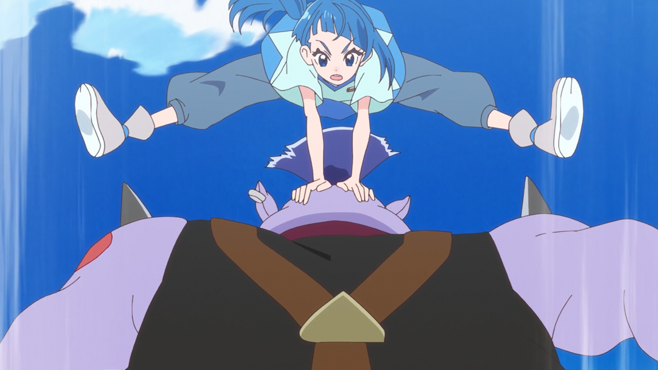 And also, there’s that one shot in the opening where Cure Prism is pulling Cure Sky from the ground that clearly evokes the famous scene from the original Futari Wa Precure where Cure Black does the same for Cure White. If that wasn’t enough to convince you that this season is shaping up to be something special, I don’t know what will.