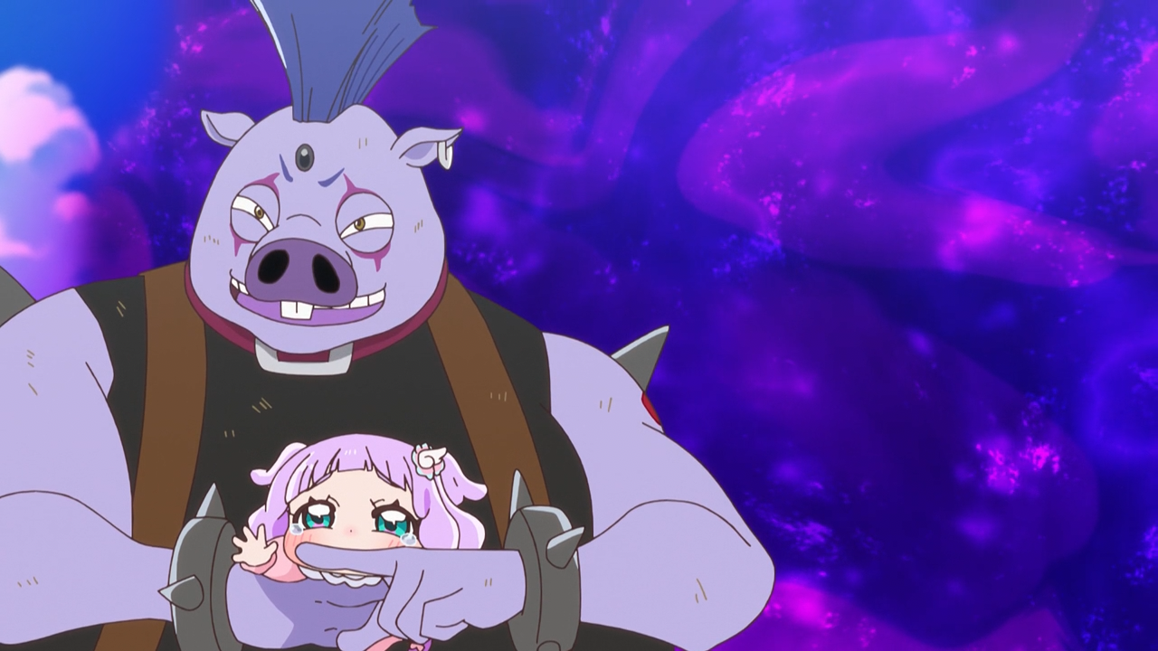I am also really glad we’re back to having the monsters directly impact their town. Sure that sounds absolutely terrible, but while I appreciated Delicious Party Precure’s pragmatic and refreshing approach of isolating the monsters by transporting it into another realm– truth to be told, it kind of became boring because I felt like there wasn’t enough at stake. It was pretty much the same stage for the entire duration of the series. Heck even the final battle didn’t spend a whole lot of time in the town when you think about it. So yeah, this was something that was good to see. On top of that, BOY, did the Ranborg beat the ever living crap out of Sora! The poor girl was barely left standing– heck she even collapsed before she pulled herself up again! What a trooper!