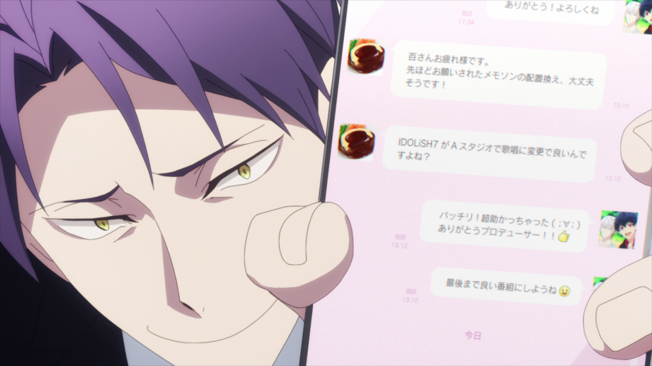It honestly frustrates me how everyone just hones in on Riku, having the rest of the members to be forced into the background. I understand he’s the center and the poster boy, but the fact that it feels like it’s becoming more of a solo act than a group one rubs me the wrong way. Even back in season 1, I did not like how Iori seemed to just be pushing Riku to be a superstar and not even acknowledging the others. And it honestly feels so foreboding to me whenever it just has Riku’s voice singing while the others’ fade out. Not to mention that Iori’s relationship with Riku right now is feeling eerily similar to Kujo’s relationship with Zero. Iori is exhibiting similar obsessive feelings towards Riku as Kujo does towards Zero. Which is VERY concerning. I honestly can’t tell if they’re glorifying Iori’s desire for control or purposefully putting him on a dangerous path. A part of me wants to believe that i7 is going to make this an issue that will be addressed/confronted later, but at this point I’m just not sure. I’m not sure if it’s because of how it was translated, but their relationship just doesn’t sound healthy to me. But I digress.