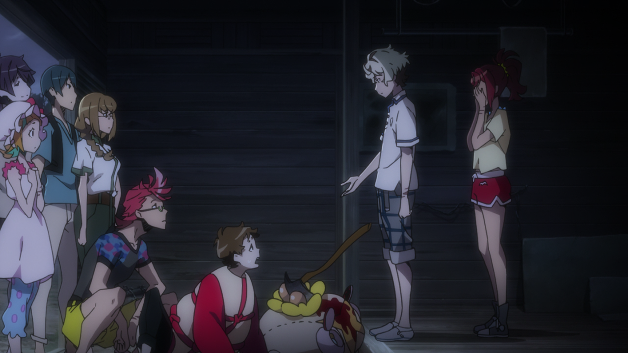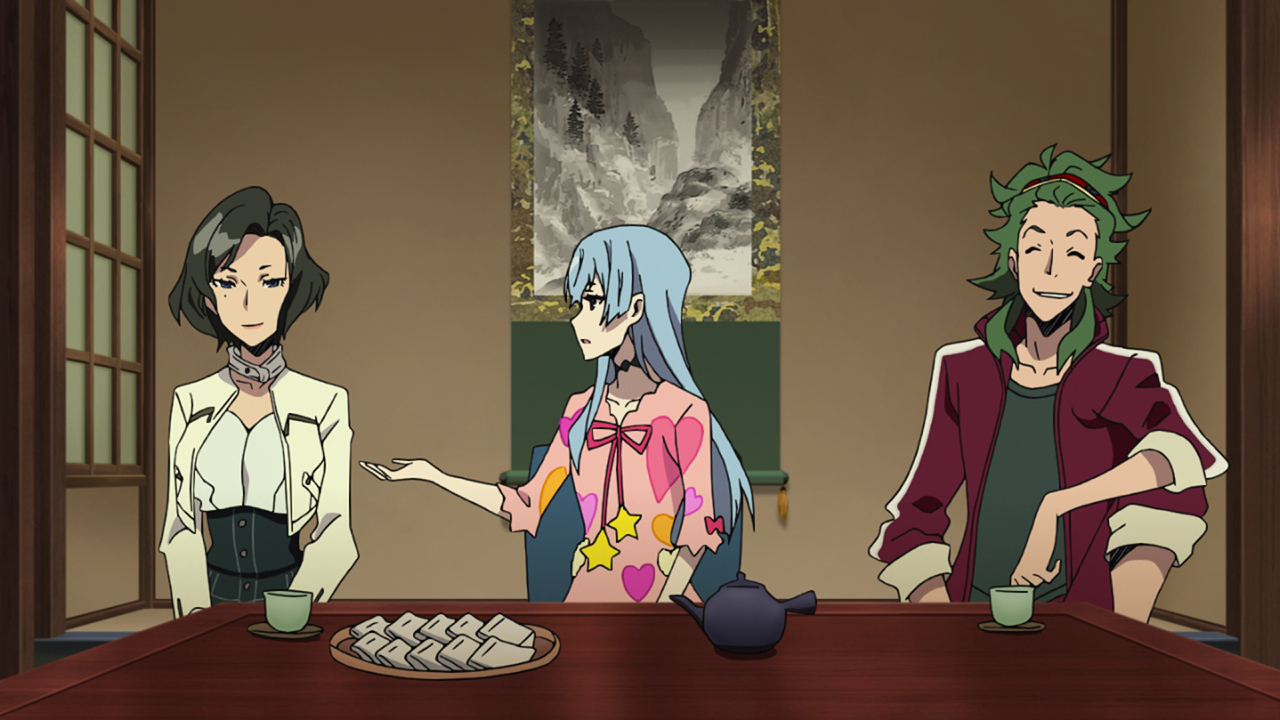 The group gets introduced to their teachers essentially being secret agents for the Kiznaiver project, which kind of makes sense as to why the seven of them were chosen since they were all in the same class that Yamada teaches in. Which still is pretty messed up that their homeroom teacher essentially just sold them off to be experiments in their messed up project without any of their consent. Which is part of the reason why I can’t stand Yamada. He just feels so arrogant and above it all and doesn’t seem to have any empathy for his students despite them being put in mortal danger because of him. And he even has the audacity to make fun or tease them about their situation and their reactions to it. I’ll expand more on that after… a certain scene in the future.