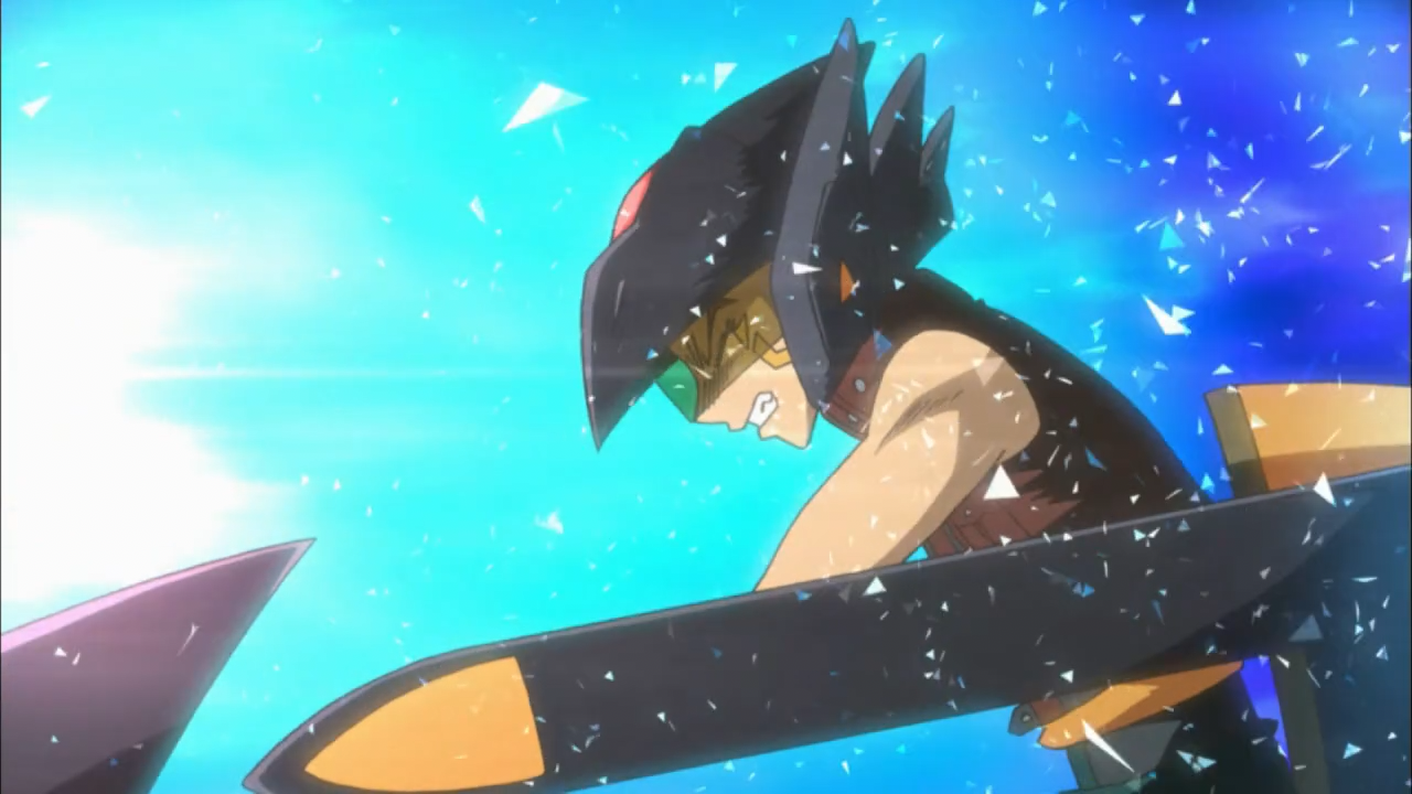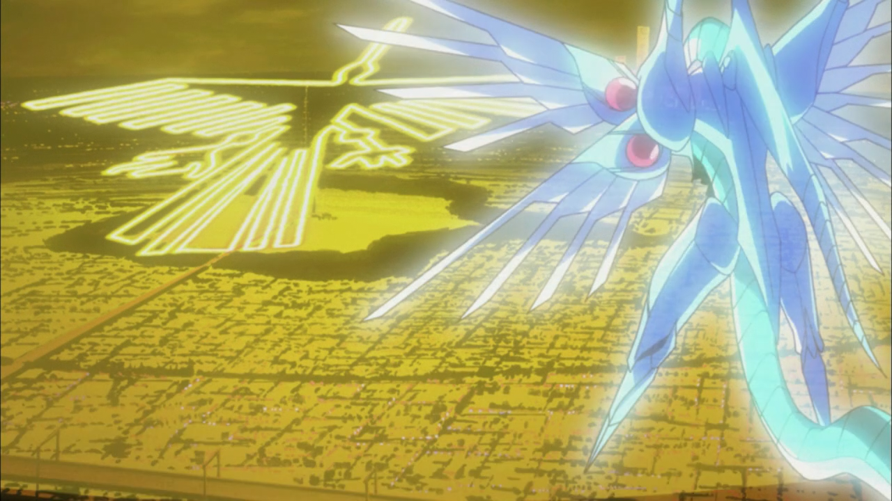 The other part, which sort of leaves a bad taste in the mouth is the fact Crow of course, has a larger role in this fight than the other two Crimson Signers (Rua/Ruka and Aki). Sure they have no D-Wheel of their own to participate, but there could have been other ways to get them more involved apart from playing as supports in the background. Nonetheless, it was set up this way so that it’d explain why Crow ends up inheriting the Dragon’s Tail from Yusei, and Yusei inherits the Head of the Dragon from Rudger’s arm. RIP Rua, the kid did his part in the Fortune Cup and against Demak, and the Crimson Dragon didn’t acknowledge him… That’s rough buddy.