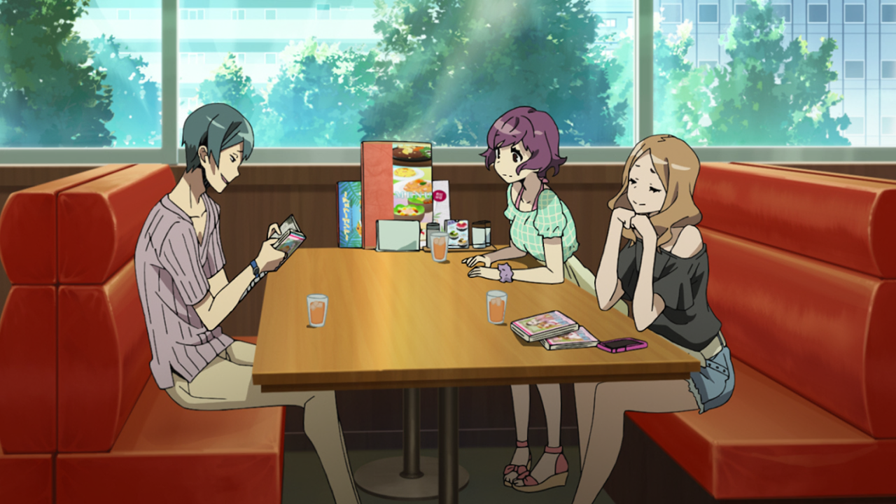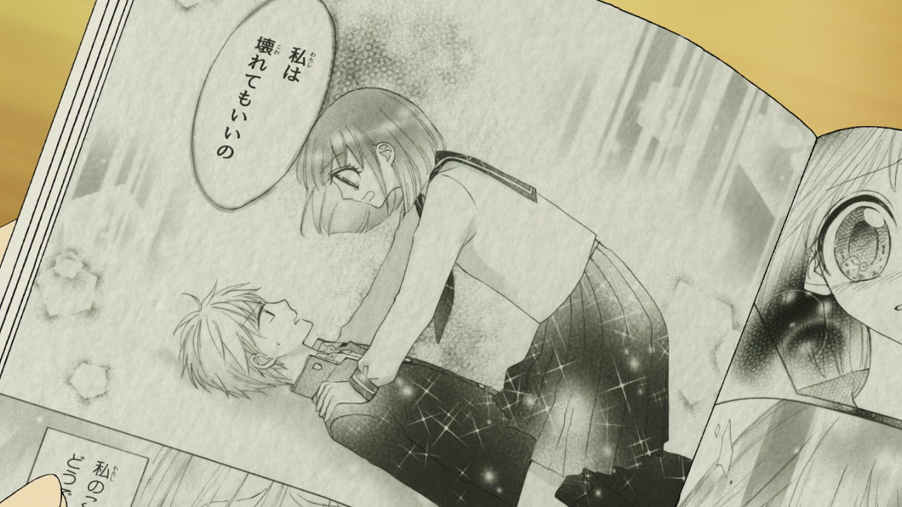 We also get a bit more of Yuta spotlight this episode, finally delving more into his caring side. For the longest time, Yuta has always been shown as selfish and superficial. However, since the last episode, he seems to have become a little more aware that something is wrong with Honoka. When he reads a certain part in a popular manga the two girls who fawns over him brought, he noticed that the dialogue reflected what Honoka said to him in the previous episode. And when he feels her distress walking with her old editor, he actually shows a great deal of concern. Even ditching his outing with the two girls just to chase after her to see if she’s okay. And thankfully he did since the editor was starting to get really pushy about getting Honoka to comply to making a documentary about her manga to push support for the planned movie. A good kick to the nads ended the conversation and Yuta was successfully able to get Honoka out of a rather uncomfortable situation.