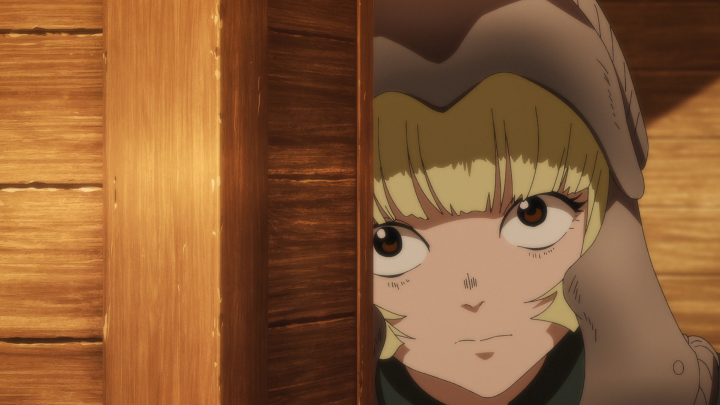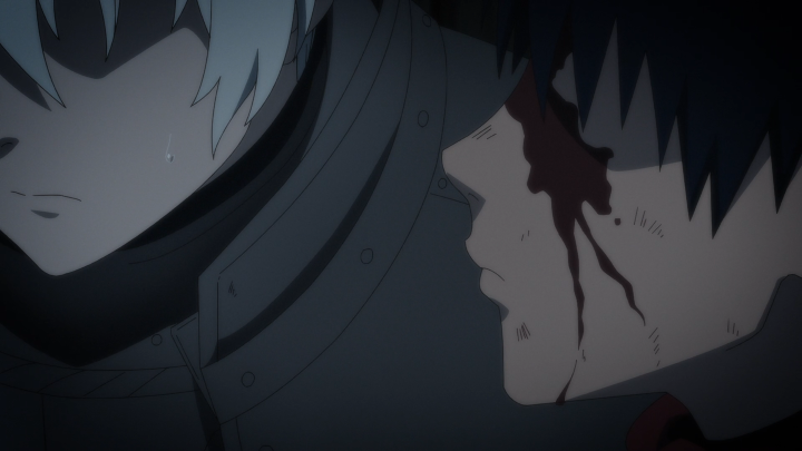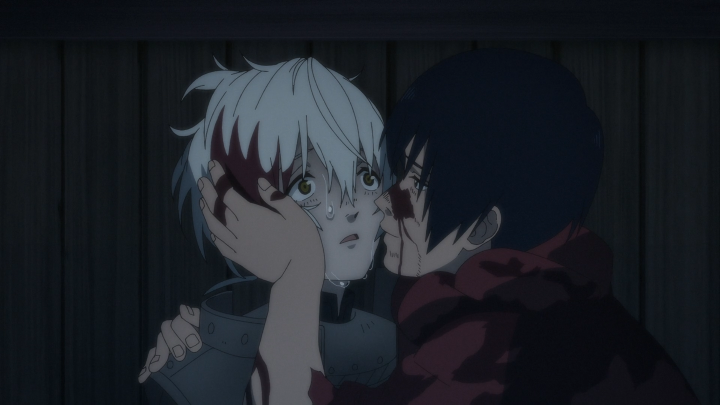 All around, this episode was absolutely phenomenal. Even without the final minute, this was already a pretty heavy episode as the war continues to put a strain on everyone. We start off with Hairo who makes a decision to let a thief go after hearing the man’s backstory. It still shows that he has humanity and can easily be impacted by the people around him. He wanted this man to have a second chance. But of course, not all humans turn immediately to goodness. Hairo learns this the hard way after coming to a shout by an elderly woman. Upon his arrival, it becomes clear that the thief broke into the house, started a fight, and now two people are dead… leaving the older woman alone. This does give us a small call back to Tasette, the woman who took care of him, but ultimately there is a bit of weight that is added as this would not have happened if he dealt with the thief previously. That being said… after he separates from them (ie. by having Fushi publicly execute him, which is a whole other can of worms) he is responsible for protecting the church that has become overrun by Nokkers. Since he’s “immortal”, he is constantly trying to run between defeating the Nokkers and protecting people from getting hurt. In short, he’s balancing a lot and can’t quickly or effectively reclaim the church. This, I expect, will have a great impact on his mental state especially since Kahaku directly comments on it when he brings everyone in for dinner.