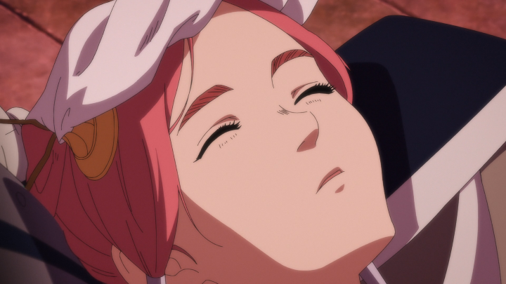 Then, of course, we have Messar who has the absolute worst time in this episode. First the King dies and Alme finds out that they are actually siblings. This is just one devastating blow, but the king’s end was not unexpected. If it was not the Nokkers that got him, it was going to be the illness. It hurts, but not as much as what happens next. I wish we could have had a few more minutes with Alme. I would have loved to learn more about her. I would have loved to know what caused her to consider suicide. Was it just the shock of losing her father and finding out that Messar and her are siblings? Or was she never ready to take over the kingdom? Was it because she was infected by the Nokkers? There are so many possible reasons for wanting to jump, but I think Messar saving her only made her passing all the more impactful. He tries to convince her to stay alive, but (and this is something I’m unclear on), after pushing her face cover away he sees the mark of Nokker possession, and he is the one who ultimately kills her. Right there a double whammy. Next, Fushi arrives and he begs him to bring her back to life and of course, Fushi is only able to provide an empty shell. Then, he tries Bon and Bon confirms that she went to heaven because she would rather experience a dream than be stuck in this reality. Ooof…. Messar, is really going through it. And naturally, Kahaku does not make this any better with his comments.