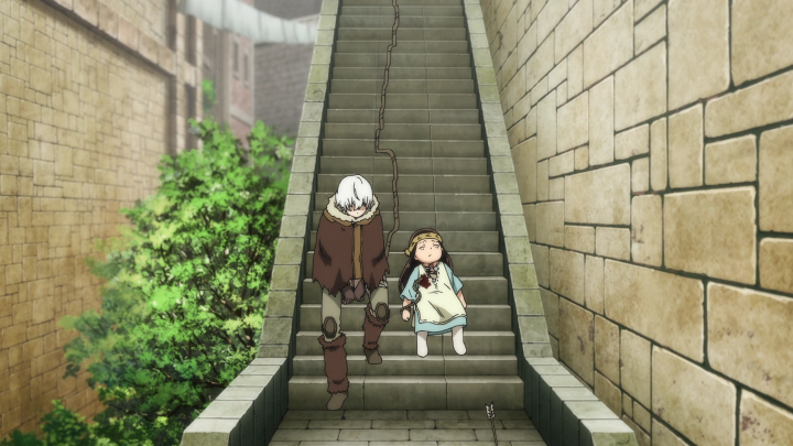 Then, of course, we have Messar who has the absolute worst time in this episode. First the King dies and Alme finds out that they are actually siblings. This is just one devastating blow, but the king’s end was not unexpected. If it was not the Nokkers that got him, it was going to be the illness. It hurts, but not as much as what happens next. I wish we could have had a few more minutes with Alme. I would have loved to learn more about her. I would have loved to know what caused her to consider suicide. Was it just the shock of losing her father and finding out that Messar and her are siblings? Or was she never ready to take over the kingdom? Was it because she was infected by the Nokkers? There are so many possible reasons for wanting to jump, but I think Messar saving her only made her passing all the more impactful. He tries to convince her to stay alive, but (and this is something I’m unclear on), after pushing her face cover away he sees the mark of Nokker possession, and he is the one who ultimately kills her. Right there a double whammy. Next, Fushi arrives and he begs him to bring her back to life and of course, Fushi is only able to provide an empty shell. Then, he tries Bon and Bon confirms that she went to heaven because she would rather experience a dream than be stuck in this reality. Ooof…. Messar, is really going through it. And naturally, Kahaku does not make this any better with his comments.