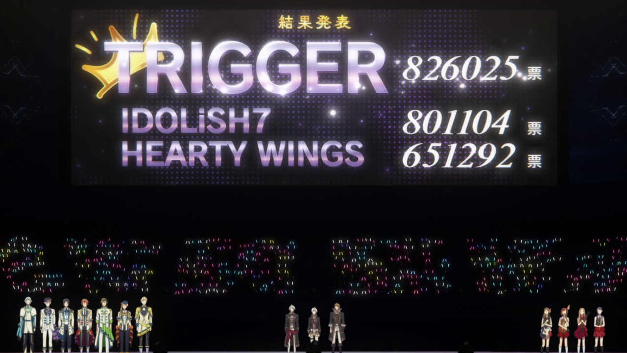 Trigger absolutely went through the wringer in Part 2 of this season with how hard they fell. However, they fought tooth and nail to get back onto the stage despite how many things were stacked against them. It was a great rising up from the ashes moment for them and it was touching to hear the fans yell out “welcome back” to them after their performance. Though do I admit a little part of me did hope they would lose MOP to i7 because I didn’t want people to keep thinking that MOP was rigged. However, in the end, this was more of a Trigger story moment rather than i7 so it seemed natural for them to win. Especially with all the crap they had to deal with prior. And we can’t ALWAYS have i7 beat them or else it really would start feeling rigged in a different way lol. Idolish7 and Trigger at their core are rivals and both groups need equal opportunities to outdo the other at times. Keeps things realistic that way and not make it an eye roller if i7 wins all the time. Unlike Utapri where Starish ALWAYS wins. In any case, it was still a satisfying conclusion to MOP as Trigger definitely deserved it the most this season. Though I was kinda hoping to see Trigger go against ZOOL at some point. Maybe another time.