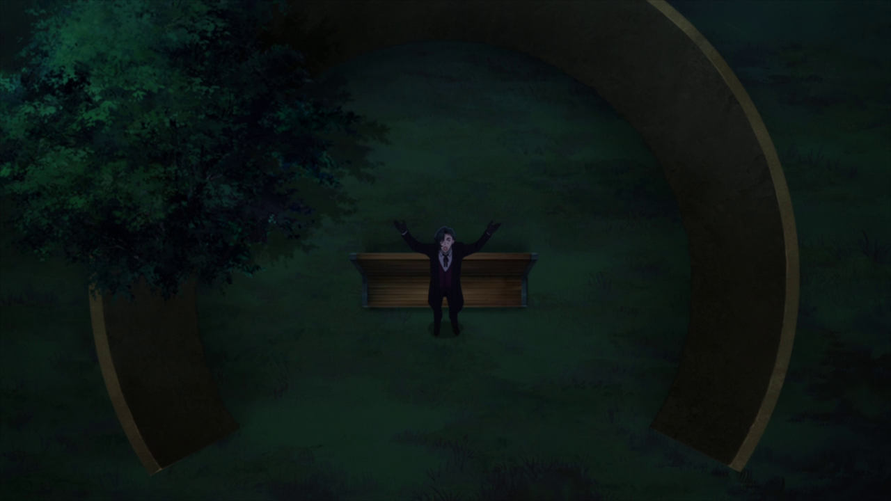But at the same time: How do you go about it without setting Kujo off? This was something Kujo was going to have to face at some point or another. I feel like, no mater who said it (take Ryu for example), the outcome and the consequences would still be the same. On top of that, as it stands, there’s no guarantee that Kujo will actually ever attain his dream. What is even a dream that never ends? Memories are fleeting and can be forgotten, so the only thing that can transcend time are the songs. So what is Kujo really trying to achieve? And can Tenn really fulfill that dream of his? Kujo helped make Zero reach legendary status, you’d think that is the highest you could go, but apparently not. It feels to me that Kujo’s dream is the sort that is actually unattainable because it’s as Gaku said, it has been been long dead, and all that is left is the experience, the knowledge and clinging to the ashes of his obsession, trapping himself into a vicious cycle with no end in sight. And they show us just that, but having him standing in the middle of the circle as he deliriously declares that Tenn will sing Haruki’s final song. (Gotta love this show’s symbolism game!)