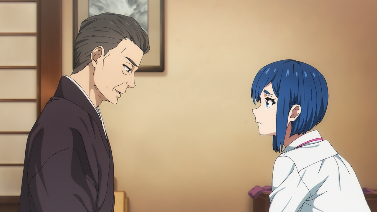 But the most important part of their interaction was when Chihiro’s father realized that his silence was being taken the wrong way, and a grave misunderstanding that was unfolding before his eyes. Though Chihiro’s father is a man of a few words, he didn’t leave him hanging when Chihiro broke down. They had the much needed conversation of how when he was little, Chihiro valued his dance lessons together because it was the precious little time he he was able to have with him. And because his father has always been a busy man, Chihiro had become accustomed to referring to him as his Master, the one who teaches him dance, as opposed to being his “father”. That’s why I was really glad that not only did he acknowledge that he was the one who was not looking at Chihiro’s true self, but he assured him that no matter what, he wholeheartedly supports pursuing the path of an idol. It was really a nice bonding moment between father and son, and we got to see more of that with Chihiro continuing his morning practices, and his father gifting him a fan he painted himself.