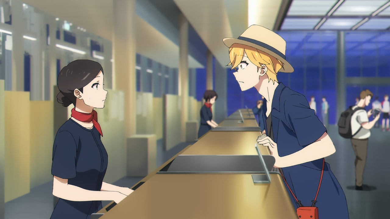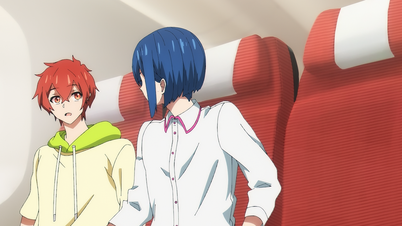 The poor kid, my god– talk about a nightmare scenario of being suddenly being forgotten by your group and stranded in a foreign country, with no money and your phone dead. I know I said I was hoping for this kind of development, where we can see Banri overcome his fear of interacting with others, but I never expected it to to pain out like this!!! He was certainly forced out of his comfort zone, as he needed to speak to others. He did chicken out from doing a street performance (so he could try to earn money) at first, though understandably so, but was swept into it after some street musicians he had passed by earlier heard him singing, and encouraged him to do so. Thanks to their help, he was able to earn a nice chunk of money. Though they had told him to keep it, he didn’t feel like it’d be right, so it looks like he went out to eat with them instead and got some help back to the airport afterwards. Fortunately he didn’t need to worry about the flight costs because as soon as Lin landed, he made arrangements to reserve a seat and give Banri access to the lounge so that — either way, that would’ve been at least 7 hours until he landed.