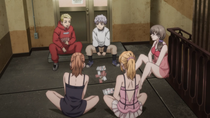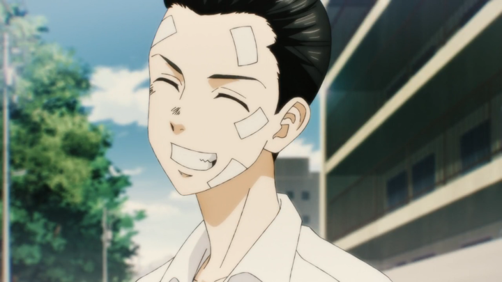 However, my favorite part of this episode was the twin dragons conversation. We got a little bit of Mitsuya lore when interacting with Hakkai, but we never really saw it from Mitsuya’s perspective. We just see this idea of the perfect older brother who is happy with his family situation. As we found out a couple weeks ago, Mitsuya was really frustrated with his family situation. He didn’t want to parent his little sisters and his mom was never home. So, this time we get to see Draken and Mitsuya’s first meeting. Mitsuya runs away from home and is graffiting a wall and Draken sticks around to watch. After eating all of Draken’s food, he’s then invited to his home where they then play poker. While I know they could have done more, I think having Mitsuya see a certain side of living was really helpful. He’s quick to declare that this whole situation seems fun and that he wants to live with them. Shoutout to the girl who quickly shut that down and told him to go home. I especially like that Draken then comments that no one is there because they want to. It’s all out of necessity. Draken is there because he doesn’t have parents. Mitsuya, however, still has a home and a family to go back to. According to Draken, because of all this Mitsuya is not cut out to be a hoodlum. Which of course only makes me smile when they meet again with matching tattoos where Mitsuya declares that he can be a hoodlum and also cares about his family. Good for him. I believe in you Mitsuya. Sorry you had to cover up your tattoo though.
