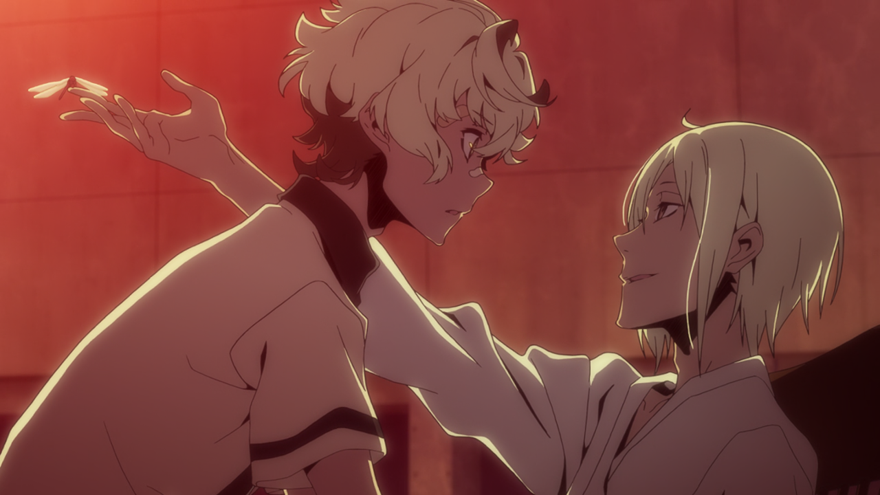 I think this was the only time where I actually appreciated Hisomu being around. Though it still annoys me that we were never able to really explore his character outside his masochistic ways. Especially since it clearly shows there’s more to him. We just don’t get to delve more into him as a character. Out of everyone, Hisomu was the only one to take initiative to stay by Katsuhira’s side and offer him company since the ones closest to him (being Chidori and Tenga) aren’t on speaking terms with him currently. Especially since he had nothing to do with that emotional breakdown and was more or less just on the receiving end of everyone’s emotions rather than adding to it. Which is probably why he seemed the least affected by it and held no ill feelings towards anyone since he personally felt no reason to.