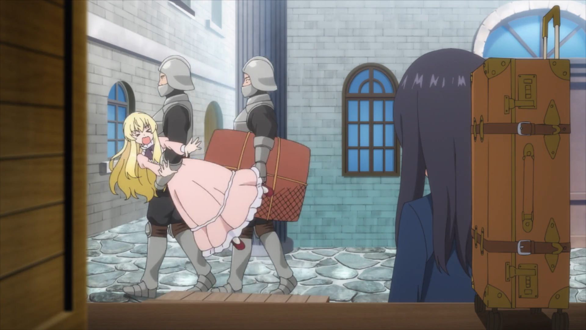 The arrival of the dragon seemed to be a turning point of the battlefield in the enemy’s favor…nah, not really. True, the dragon was more powerful than the other monsters, but by using her teleportation skill and Wolf Fang’s arsenal, Mitsuha successfully overpowered the dragon and forced him to retreat without any casualty on her side. I never expected a top-tier action sequence from this anime, so the war ended at that was satisfying enough for me. Additionally, the Wolf Fang got one of dragon’s fangs as their trophy. For their feat, Mitsuha and the Wolf Fang were hailed as heroes and were presented reward from the king himself. But of course, Mitsuha would be the only one present while the Wolf Fang return to their world.