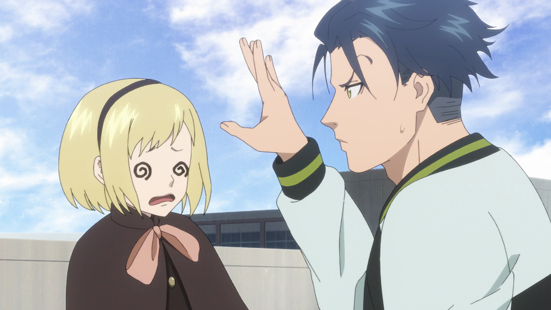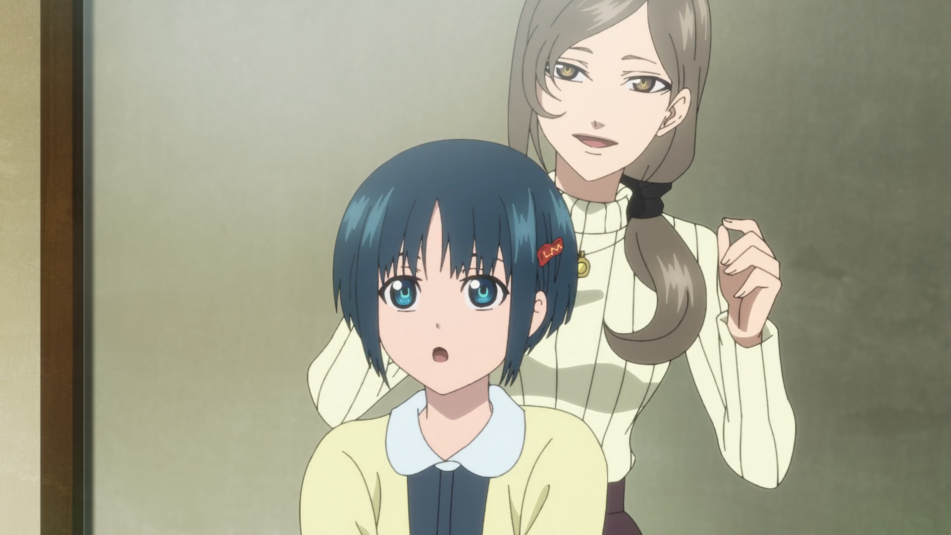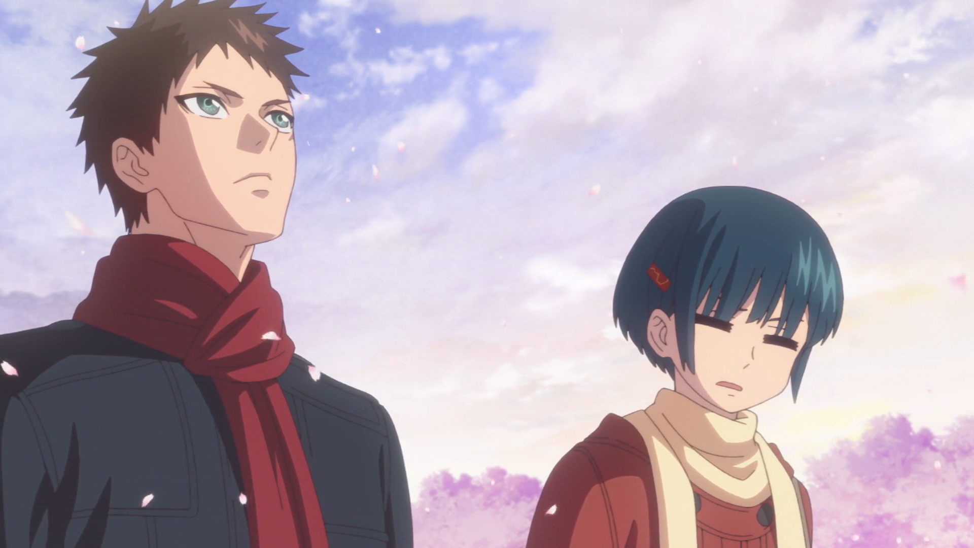 While I have reservations with how the fight with Kai ended, the remaining part of the episode dedicated to Botan’s past and more Hyoma x Botan moment were enough to make it up. The woman in the previous flashback turned out to be Botan’s father’s younger sister, Satsuki, making her Botan’s aunt. At first sight, she seemed unfriendly with her stiff serious face, which hid her caring side. Due to the Marebito inside her, one of Botan’s relatives tried to kidnap her so he could take advantage of her unknown power. I cringed when I watched the scene when the man made this crazed look while referring Botan as if she’s a thing. Eternally grateful to Satsuki who didn’t let that happen.