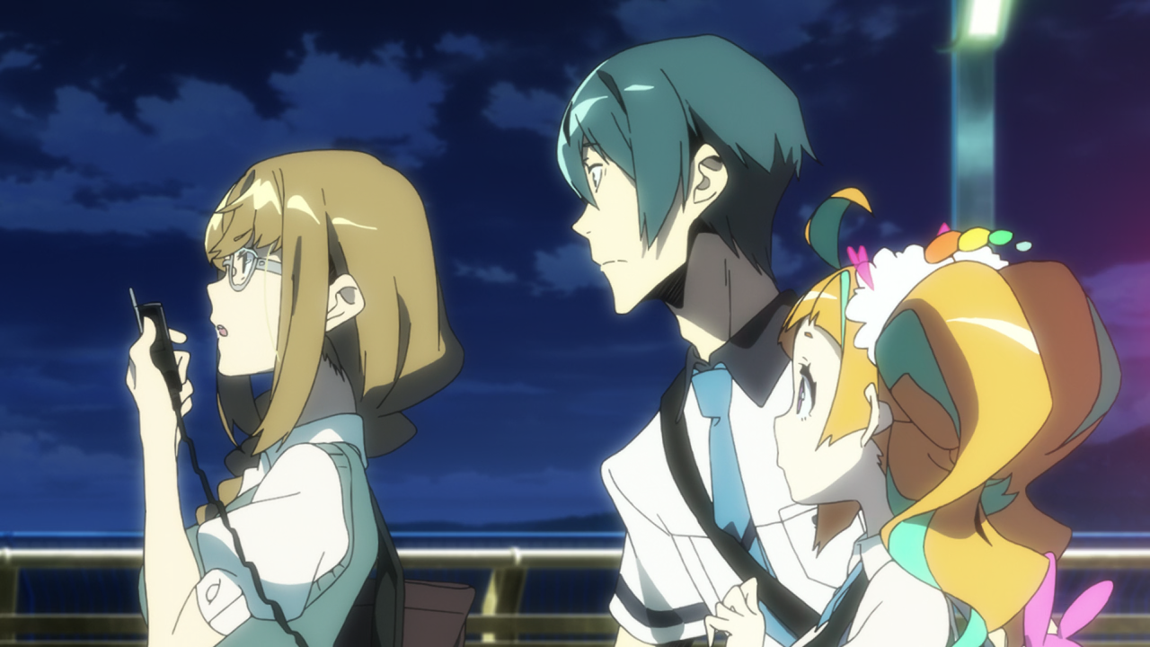 BUT NICO SAYS THE REALIST LINE THIS EPISODE. “Nico honestly doesn’t care about Sonozaki-san, no matter how tragic she is.” Took the words right out of my mouth! I also like the fact that all of them really don’t care about her either. ESPECIALLY Honoka who probably received the worst amount of torment because of Sonozaki. But they’re still willing to help out because they’re doing it for Katsuhira, not for her. The group finally comes together again after a while of being fragmented and I’m glad that they all seem to have accepted the other as friends despite Honoka still being resistant to the idea. Represented by how she’s on the opposite side of the bridge from the others at the start but then as the scene goes on, it shows them spreading out as if to bridge the gap and have invited Honoka into their circle. I love little details like that.