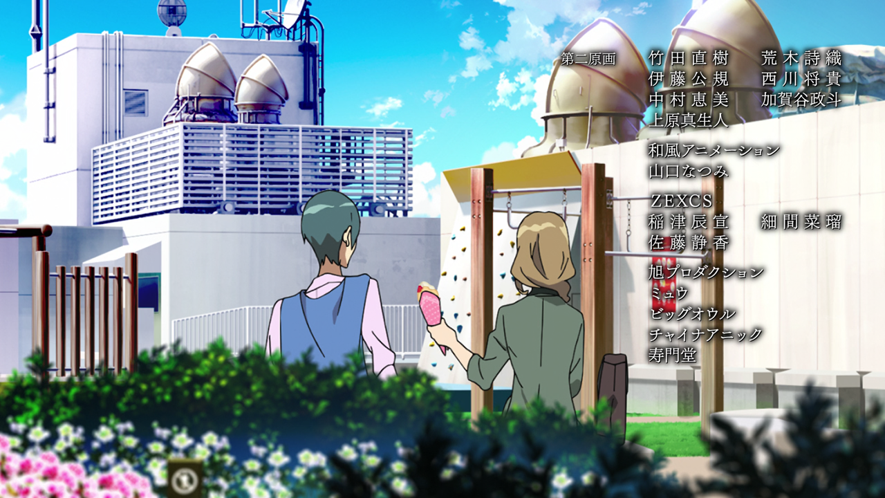 The last few minutes of the episode basically gives some time for certain pairs. As someone who doesn’t like it when series basically pairs everyone in a group together of course there would be only ONE ship that I give all my attention to. With that in mind, of COURSE the ending scene between Yuta and Honoka is the thing that really captured my attention. As I’ve stated in a previous post, there has always been a dividing line between Honoka and Yuta whenever they’re alone together, showing where they emotionally stand when it comes to the other. At the start, Yuta was always hovering very close to the dividing line, as if trying to push himself into Honoka’s space while she sat the furthest away from it. But over time, Yuta slowly started giving Honoka more space and in turn, Honoka was the one who slowly drifted closer. And in this brilliant final scene between the two, Honoka is the one closest to the dividing line between them and is the one to FINALLY cross over. She initially crosses over by passing the crepe over to him before fully crossing over onto his side. Which is just… NGHHHHHHH… It’s so good!