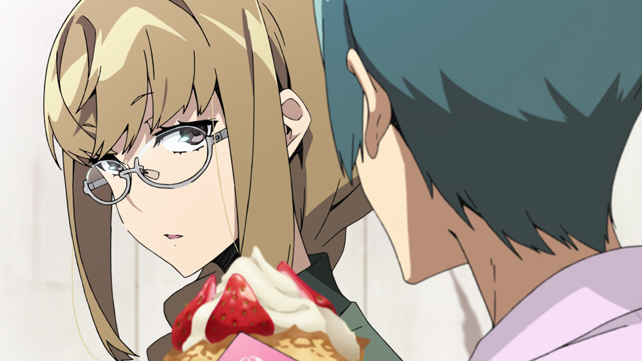 The last few minutes of the episode basically gives some time for certain pairs. As someone who doesn’t like it when series basically pairs everyone in a group together of course there would be only ONE ship that I give all my attention to. With that in mind, of COURSE the ending scene between Yuta and Honoka is the thing that really captured my attention. As I’ve stated in a previous post, there has always been a dividing line between Honoka and Yuta whenever they’re alone together, showing where they emotionally stand when it comes to the other. At the start, Yuta was always hovering very close to the dividing line, as if trying to push himself into Honoka’s space while she sat the furthest away from it. But over time, Yuta slowly started giving Honoka more space and in turn, Honoka was the one who slowly drifted closer. And in this brilliant final scene between the two, Honoka is the one closest to the dividing line between them and is the one to FINALLY cross over. She initially crosses over by passing the crepe over to him before fully crossing over onto his side. Which is just… NGHHHHHHH… It’s so good!