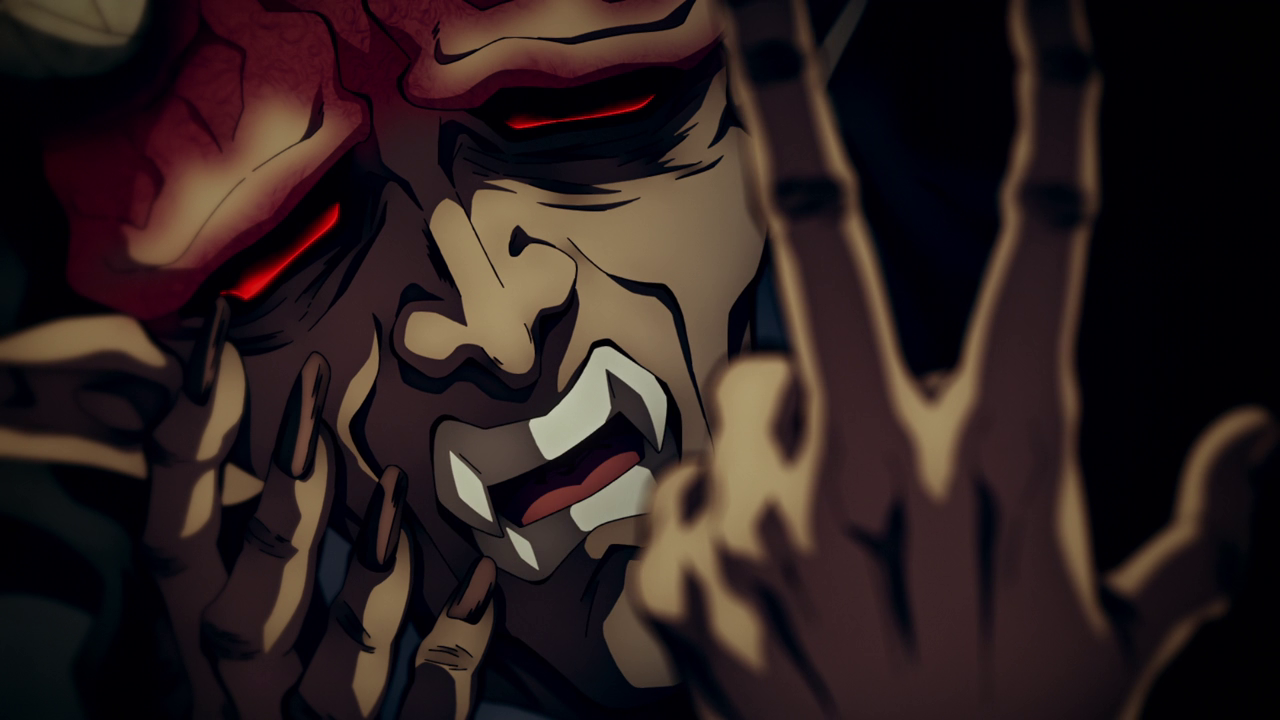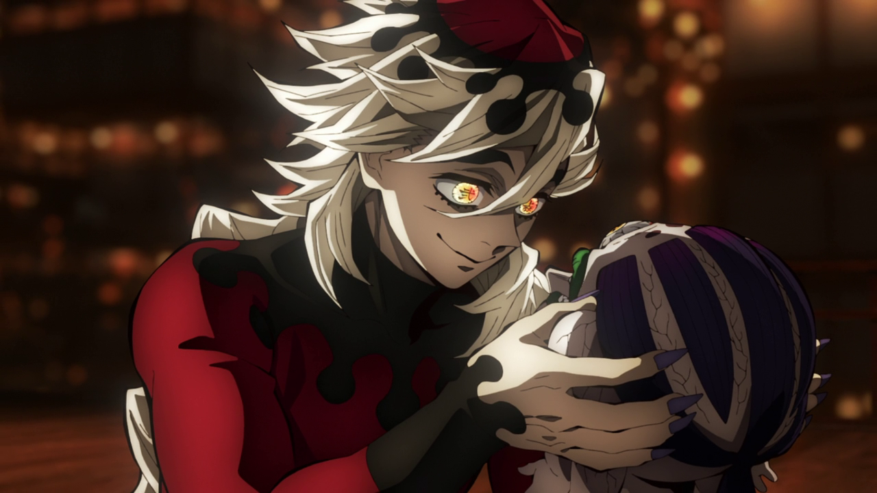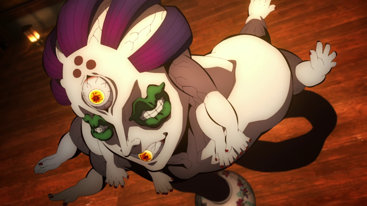 I heard a lot of people were bummed that the last episode didn’t show the Upper Demon meeting, but considering how things went down, I’m glad they didn’t. I feel like if they did shove this part into the last episode of last season, I feel like it would have been too much. Especially since I feel like they wanted to end the season on a hopeful and relieved note. We get to meet all of the Upper Moons and boy… I feel like they are what was to be expected from what we’ve seen of demons so far. They all stick out in different ways and while I do really like some of their designs, ironically, I think the two demons that they will be focusing on this season had to be my least favorite designs out of the remaining ones. My brain cannot even process Gyokko with all the different parts of his body in the wrong places on his face besides his nose. And then Hantengu just looked like the generic portrayal of a demon with red eyes, horns, fangs with pale/gray skin.