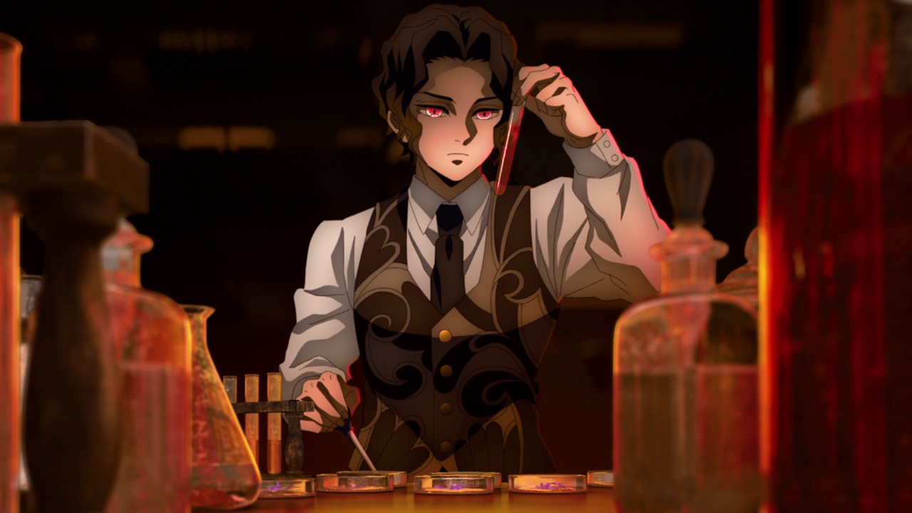 Doma…I’ve said this again, but it’s unfair that he has Mamoru Miyano’s voice when I hate him so much! His voice is so beautiful and I can’t look away from him just for this very reason! I have no doubt there are many reasons to hate Doma and I can’t blame Akaza for it, but I noticed that he began to lose his patience and showed annoyance when Doma mentioned what he’s using the vase that Gyokko gifted to him.