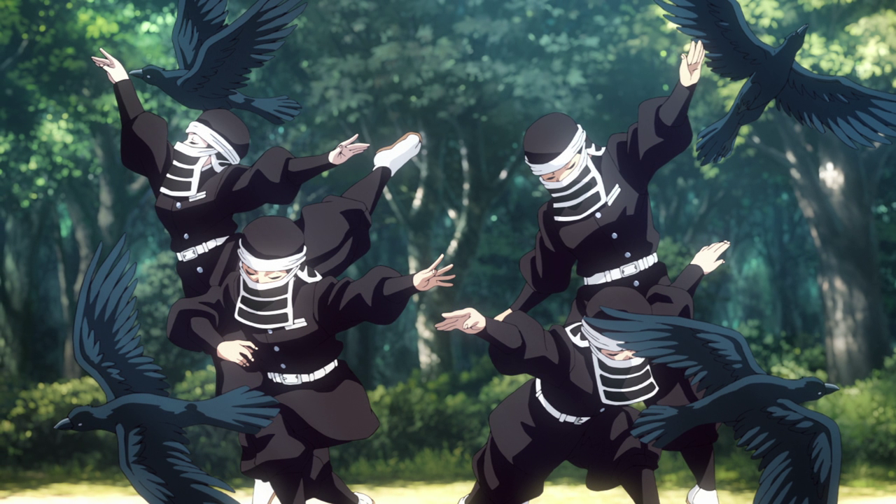 Gyokko is creepy, but Hatengu is even more annoying to me for a particular reason that will be revealed in later episodes. When listening to Kokushibo, I couldn’t help but automatically think of Byakuya because they shared the same VA. Seriously, I only ever know Byakuya having that voice! lol