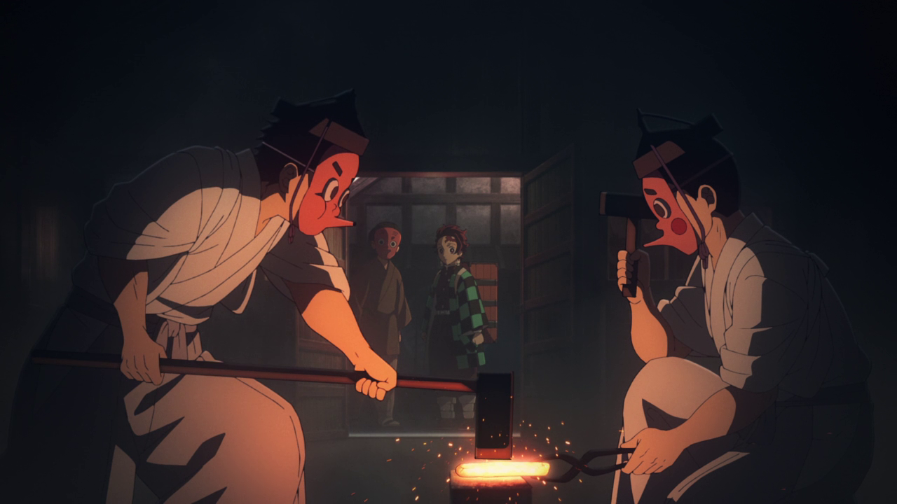 The episode ends with Tanjiro finding Muichiro arguing with a little kid from the Swordsmith village over something (who I immediately noticed was voiced by Hinata from Haikyuu lol). But the biggest thing that happened was seeing a guy with long red hair and Hanafuda earrings that looked similar to both the Upper 1 rank demon and the mysterious swordsman we’ve seen in Muzan’s flashbacks. I didn’t talk about him when I was talking about the Upper ranked demons, but Kokushibo is definitely one to watch out for considering the eerie similarities between him and the mysterious demon slayer that a lot of people thought to be Tanjiro’s dad. But he is TERRIFYING both physically and in terms of his abilities that we only see very briefly. His six eyes on his face makes him hard to look at. However, with how this was all set up, I can imagine how confused anime-only’s would be with the amount of fragmented information we got this episode on the topic of the long, red-headed swordsman. It’s honestly really hard for me to talk about it because I know the whole situation regarding it. But considering the upper demon ranks hasn’t changed for over a hundred years, I think it’s safe to say that Tanjiro’s dad isn’t the upper rank demon or the mysterious swordsman given the time frame of everything. Especially when Tanjiro thinks back to him, he doesn’t question if it’s his dad or not and refers to him as someone he’s seen before. So I’m curious to how far they’ll go into this little mystery this season considering they focused a lot on it this episode.