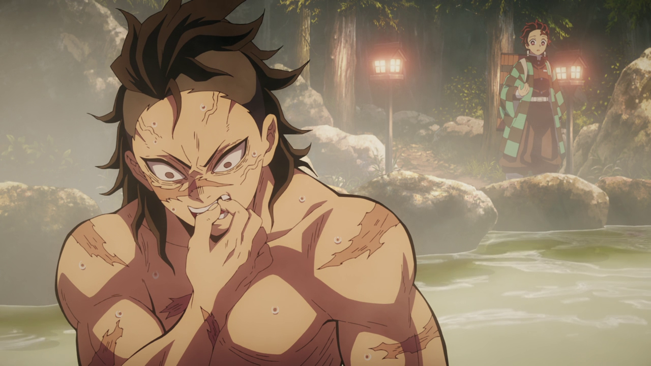 While Genya had a pretty bad first impression in the first season, effectively labeling himself as Demon Slayer Bakugo due to sharing the same voice actor, I am eager to see what’s going on with him since there seems to be a lot of mysteries revolving around him. Like, how the heck did he get so big in such a short amount of time? When did he start training under Himejima? And why is he yanking out his teeth??? Besides that, we do learn that he’s the younger brother of Sanemi, who probably took the cake of terrible first impressions… which honestly makes a lot of sense with these two being related lol. Though it also seems as if the two don’t have a good relationship (which is honestly not even that surprising either) since Mitsuri commented that Sanemi has claimed he has no brother. While it seems as if he’s still a violent jerk, I am curious to delve into his character a bit more and find out what’s been happening with him since becoming a demon slayer. Not to mention the fact that the opening revealed his weapon is strangely a gun rather than a sword. But goodness, Tanjiro’s reaction to Genya telling him to die upon greeting him was to just jump into the hot springs naked with him just made me die. I honestly can’t wait to see what kind of bond Tanjiro and Genya forge since it is honestly hilarious how aggressively polite and nice Tanjiro can be while also being stubborn about it. If it’s anything like Tanjiro and Inosuke’s bond, I’m all for it.
