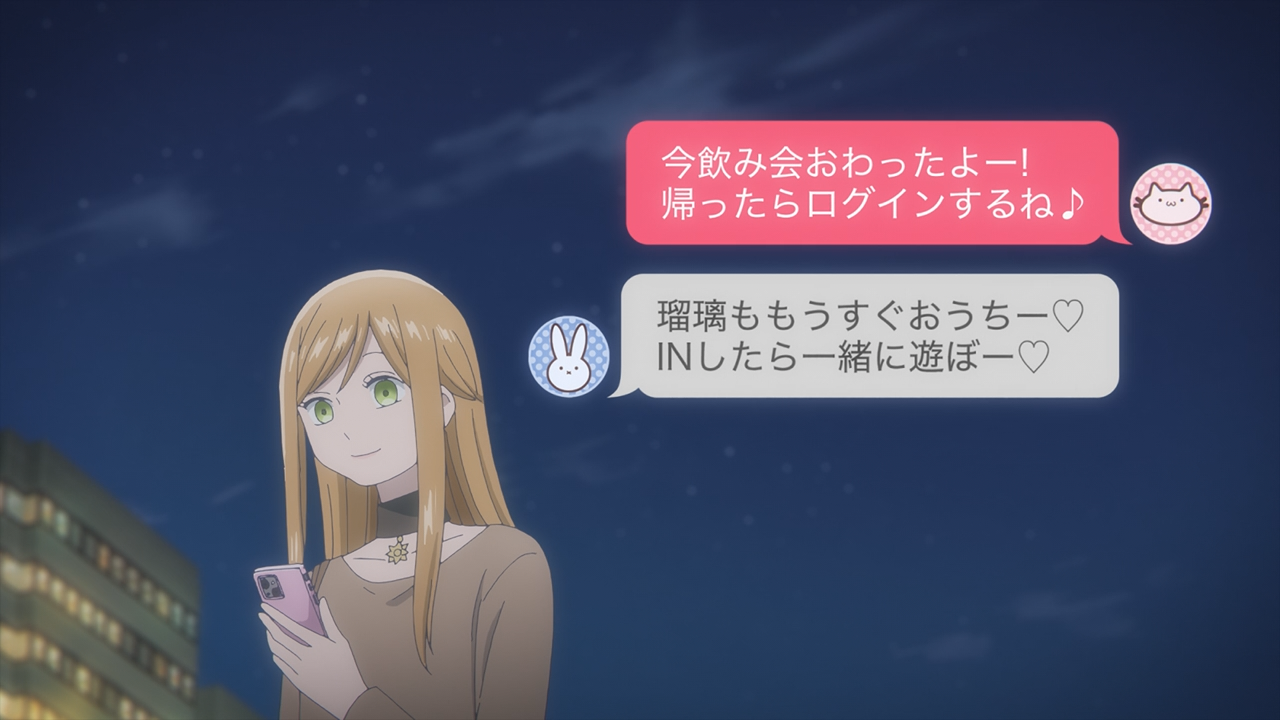 On that note, it was precisely because of that interaction that Akane also found herself feeling a bit rattle. It started off when she had logged in and spotted Rurihime and Yamada talking alone together in what she interpreted as an intimate moment, which led to the assumption that the two were an item. Though I do have to laugh because even with the way Rurihime messages Yamada, it can absolutely be misunderstood by an outsider who has absolutely no clue what’s going on hahaha! Though I suppose I can understand why Akane would feel the way she did though. She just came out of a breakup, and while I wouldn’t say she has fallen for Yamada just yet, her heart has certainly been tickled by his kindness. That would pretty much explain why she couldn’t help but feel mopey and have doubts about Yamada saying he never had a girlfriend before. She sunk into that negatively, gloomy headspace we all hate that just imagines the worst of things, even when we already know that’s not actually the case.