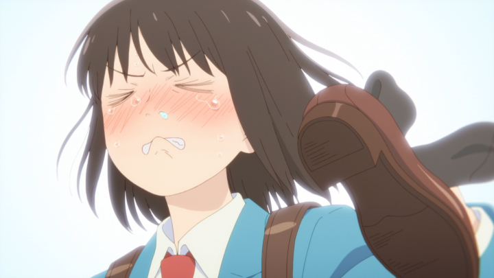 Sousuke Shima is the other character we are introduced to – and if you ask me, I think he is Loafer and she is Skip. Sousuke couldn’t care less about his high school life, but rather than a depressing nihilistic approach he just vibes. We don’t get as much information about him in this episode aside from the few comments from his acquaintances that he generally doesn’t take school seriously, but since he goes to the prestigious school like Mitsumi, he must be smart, right? I’m predicting that he’s either the guy who is just a natural when it comes to school or he had a very strict living situation that ultimately led him to have an almost flippant attitude. I’m hoping it’s the former, but I’m just happy he’s going to have fun at school. That being said, we see a lot of him through Mitsumi’s eyes! So to her, he’s just this really kind guy who went out of his way to help her at the train station, run to school with her, and to be her first friend that she made. It makes me excited to learn more about their dynamics!