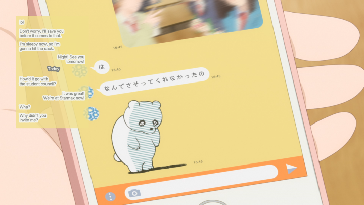 What I really liked about the whole Starmax scene is that Kurume, who was originally hesitant to come, opened up as they continued to talk. There were a couple of moments where they could have had her just step out and leave, making her a harder friend to obtain. But instead she smiles and leans into the conversation. As a major introvert myself, I loved to see this! She’s still uncomfortable with the situation, but she’s slowly making friends! You go Kurume! I hope you’re able to open up to the rest of the cast. One of the things I really appreciated about Kurume’s character is that she seems to stereotype her classmates based on what she thinks their perception of her would be – and for the most part she struggles to give others a chance. And while making assumptions about others isn’t the greatest thing, you can tell that it’s coming from a place of self-defense. With Mitsumi she’s able to drop her guard a lot faster, and tends to cling to her whereas characters like Yuzuki, despite trying to get along with her, tend to get denied by her. It’s a situation where she’s not deliberately mean, but it definitely comes across as her not liking someone of that personality. Ah… I really hope they are able to become good friends.