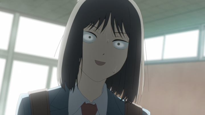 The second half of the episode focuses on Kurume trying to invite Mitsumi to a movie, but failing to recognize Mitsumi’s “oh, I’ll just invite people as I chat with them” type approach to social situations. As a result, there’s a whole group going to see the movie (but no Kinomoto 🙁 ), much to her stress. And as a side note, I loved the little moment where they talked about Mitsumi’s style. Personally, I think Nao-chan should have let her go out in the full get-up. She was cute!! Anyways, once we get to the meeting place we find out the group to see the movie is: Mitsumi, Kurume, Sousuke, Yuzuki, Mika, Yamada and Mukai. Mika is quick to hype herself up based on the appearance of Mitsumi and Kurume, and I don’t blame her, she was cute! But of course Yuzuki arrives and Mika immediately deflates. You were so confident in your outfit ! Just because there is another cute girl does not make you any less cute. Instead there are more cute girls !! (ahaha I say this, but I am definitely guilty of this… ah … haha…) I can’t wait for Mika and Yuzuki to actually sit down and talk to each other. I think they could become good friends, but they have to actually talk ! Mika doesn’t seem to think highly of Yuzuki and Yuzuki generally understands that certain people just don’t like her. And it makes me sad. I hope Yuzuki is able to have a happy high school life with friends without having to constantly tell people that it’s okay not to like her.