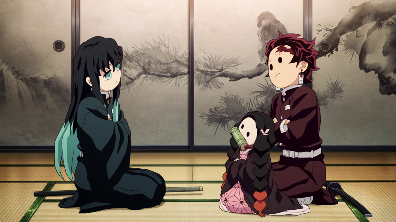 Also I just wanted to pause and acknowledge that Nezuko’s hair being braided to look like Mitsuri was all sorts of adorable and I love that Tanjiro was just trying his absolute best with it. XD