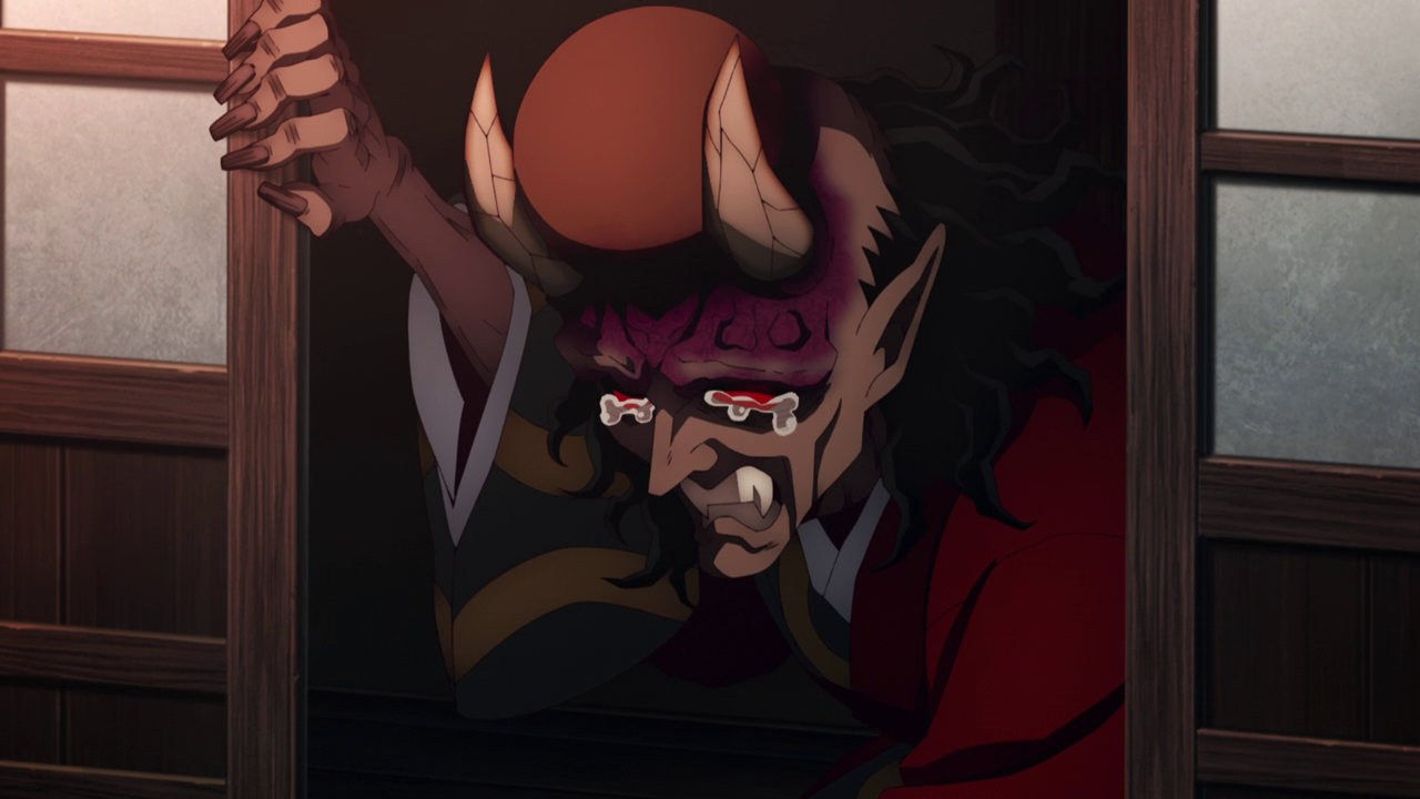 There’s definitely a lot of mystery surrounding Genya as to how his tooth had grown back despite pulling it out earlier and what is going on with his situation with his brother. The fact that he refers to Sanemi as “aniki” as opposed to “nii-san” seems to indicate a form of respect despite the two not being on good terms from what Mitsuri has mentioned. Also the fact that he uses a freaking GUN to fight is all sorts of unexpected and pretty cool. Especially when it doesn’t seem to be a common weapon used at this time from what we’ve seen so far. I look forward to seeing what is going on with this guy, especially since he seems to have been stabbed right through the gut but I’m pretty sure he’s not dead. He definitely has the potential to be interesting and hearing how a couple of my friends who have read the manga really like the guy, I am curious to how this guy will develop.