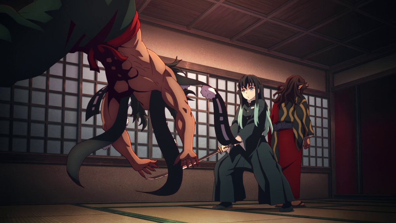 Looks like we all agreed that the scene when Hatengu appeared and crawling into the room is scary and creepy, truly demon-like. One of the scariest after the head spider demon that Zenitsu fought in Season 1 and Daki in Season 2.