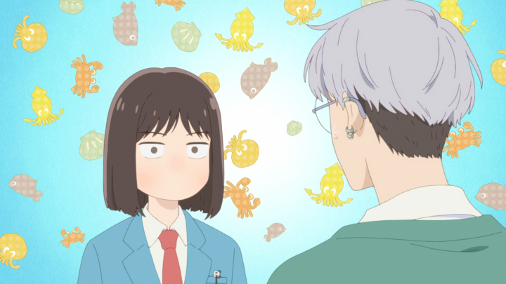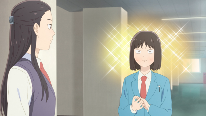 The second half of this episode deals with Mitsumi and her “laziness”. Rather, Mitsumi listens to her classmates around her preparing for midterms over their break while she was off having fun. Naturally, she feels like this was time that was poorly spent and quickly seeks out the advice of her homeroom teacher (who, funnily enough, is probably the biggest slacker on staff). Instead, she’s redirected to the student council treasurer, Tokiko Takamine. Previously, when we met her, she showed us her daily schedule which was planned out to the minute. She’s definitely the type of person who needs to be doing something or else the time may be considered wasted. Mitsumi decides to follow her around for the day and while they are both diligent, Takamine doesn’t give herself a chance to relax. And while many people might think it’s due to an uptight nature, it seems to spawn from a place of nervousness. Truthfully, that schedule seems to be something that keeps her grounded, but as this episode later shows, it can also be a contributor to her nerves. This part of the episode was so much fun because Mitsumi is able to show Takamine that everything doesn’t need to be so rigid. There can be good experiences that are completely unplanned. Missing the bus is absolutely devastating to Takamine whereas Mitsumi has the perspective of “wow! buses come every 15 minutes!” They take the time to play with a cat, return them to their owner and finally get back on the bus where Takamine tries to make up for lost time by studying. Mitsumi on the other hand is completely in awe of the sight beyond the window. And it’s so lovely to watch the treasurer see things that she misses all the time because she’s so hyper-focused on the task at hand.